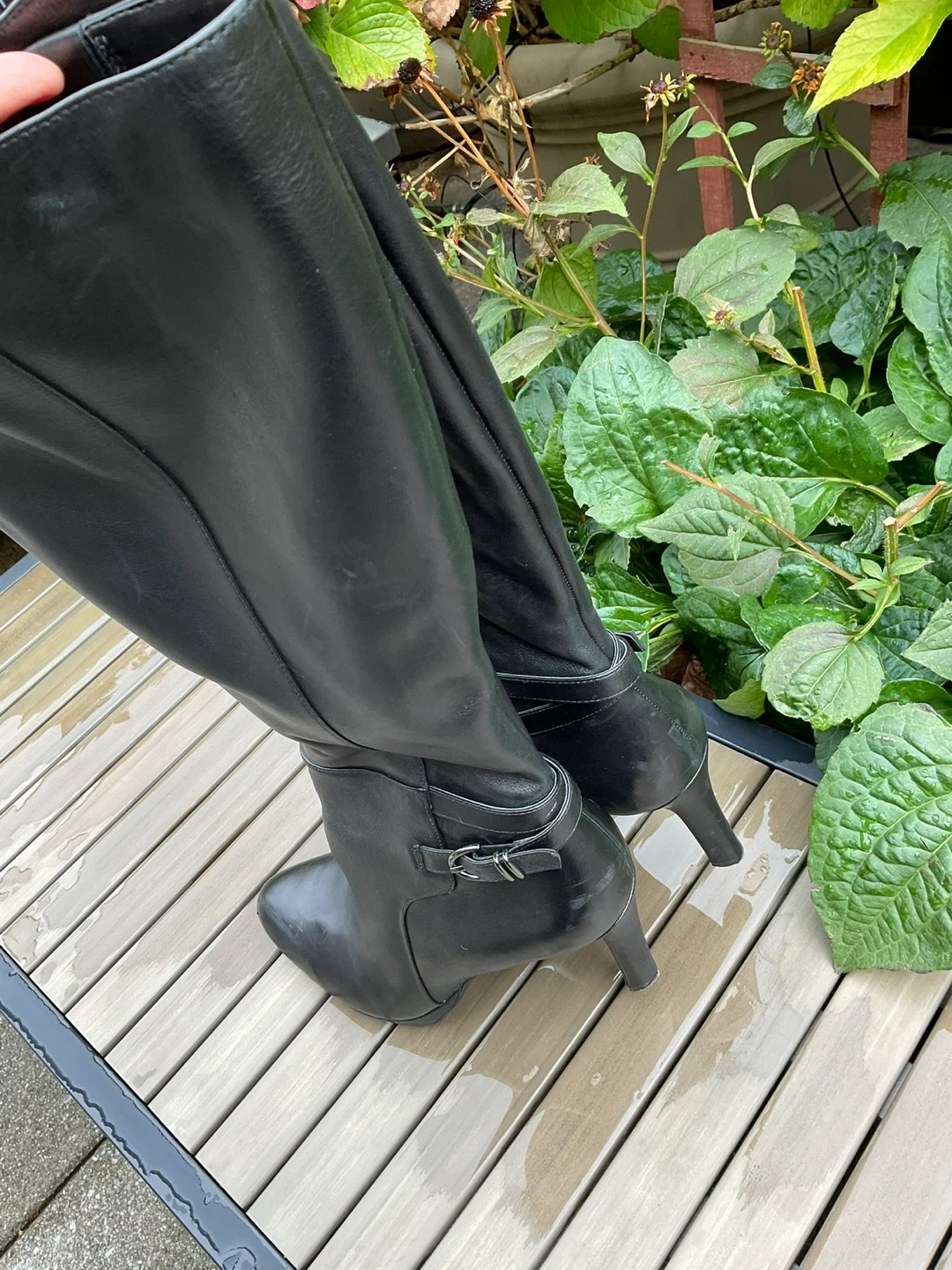 Selling a pair of Naturalizer knee-high boots in black leather size 10W. These boots are in great condition and ready for a new home! They feature a classic design with a comfortable heel height, perfect for dressing up or down. The boots have a zipper closure for easy on and off.