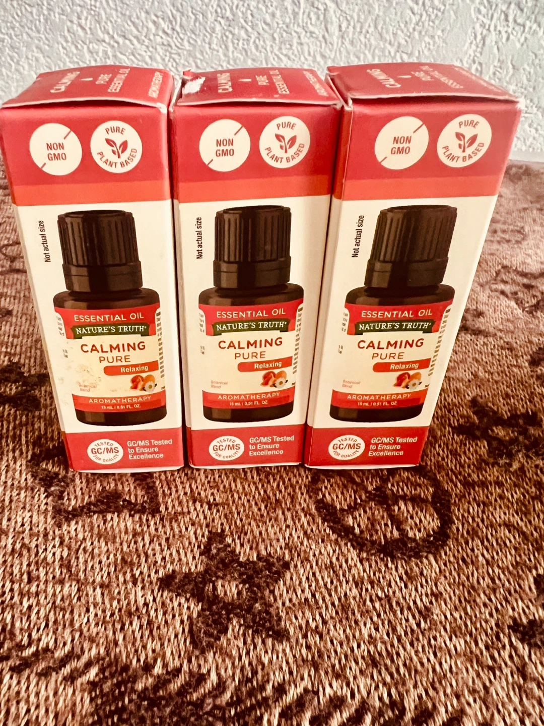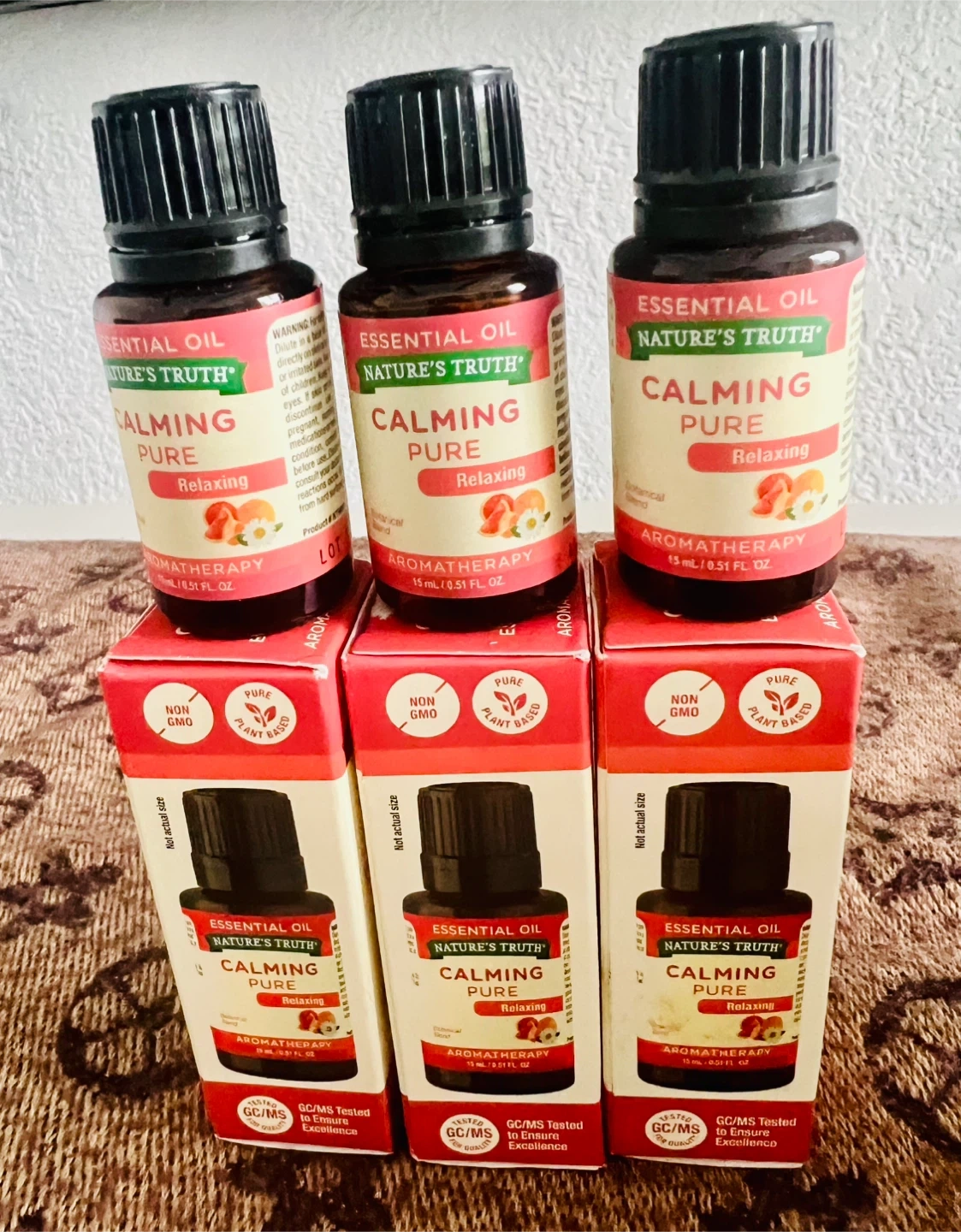 I'm selling 3 bottles Nature's Truth Calming Pure Essential Oil. It's relaxing aromatherapy center. Each bottle contains 15 ml / 0.51 fl oz. It is pure and plant based, non-GMO.