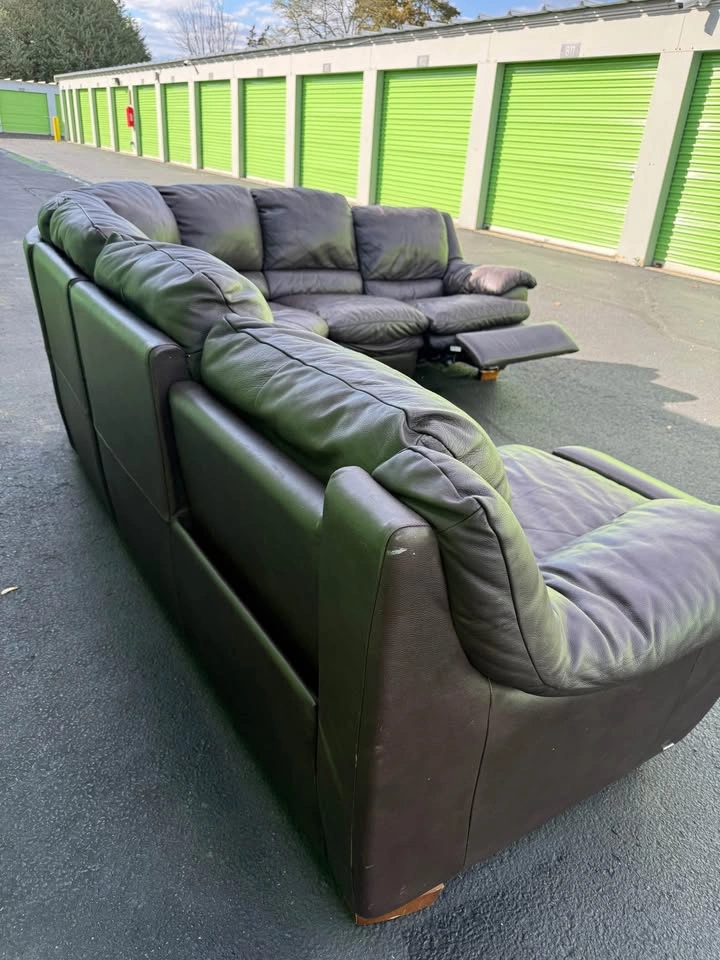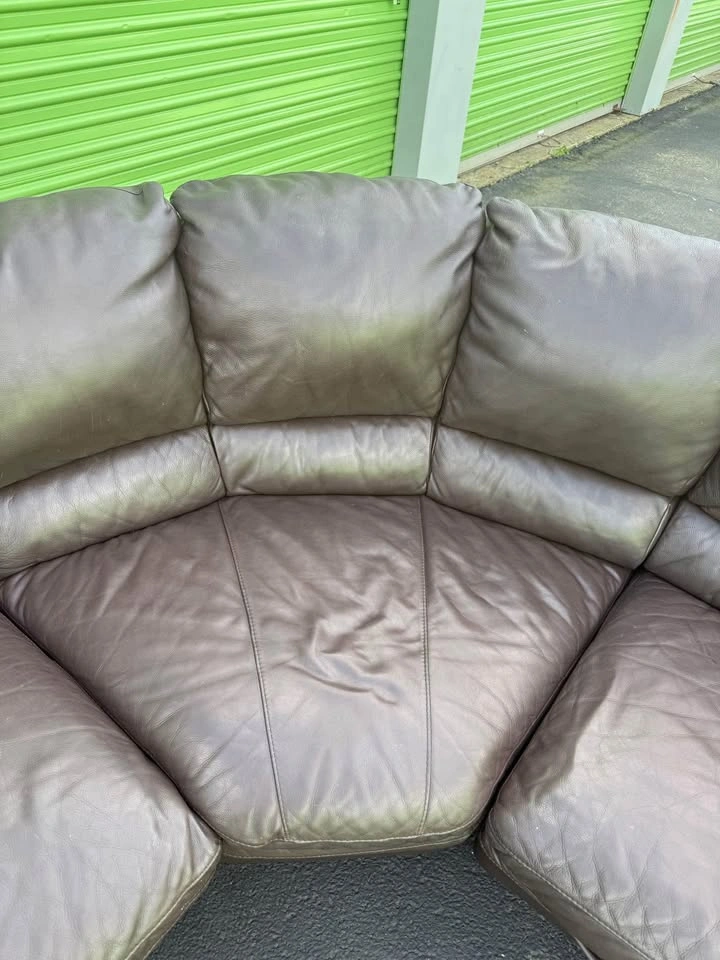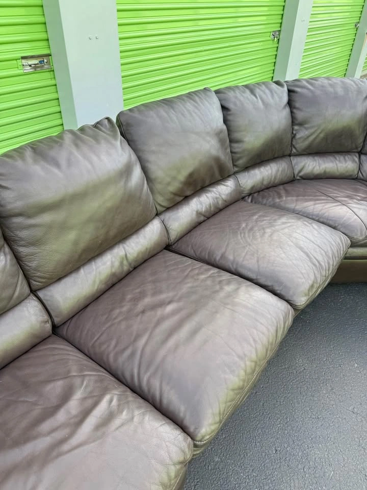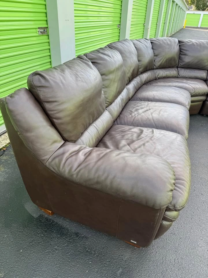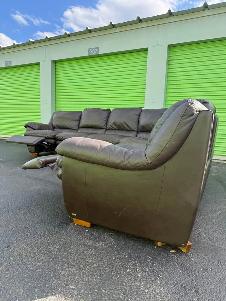 15Natuzzi Brown Leather Sectional, about 127 X 100”. Breaks apart into 4 pieces, has a smaller piece if you want to adjust what side is the longer side. Has some wear but still plenty of life left. Premium Italian leather Natuzzi sectional with dual recliners — retails $4,000+