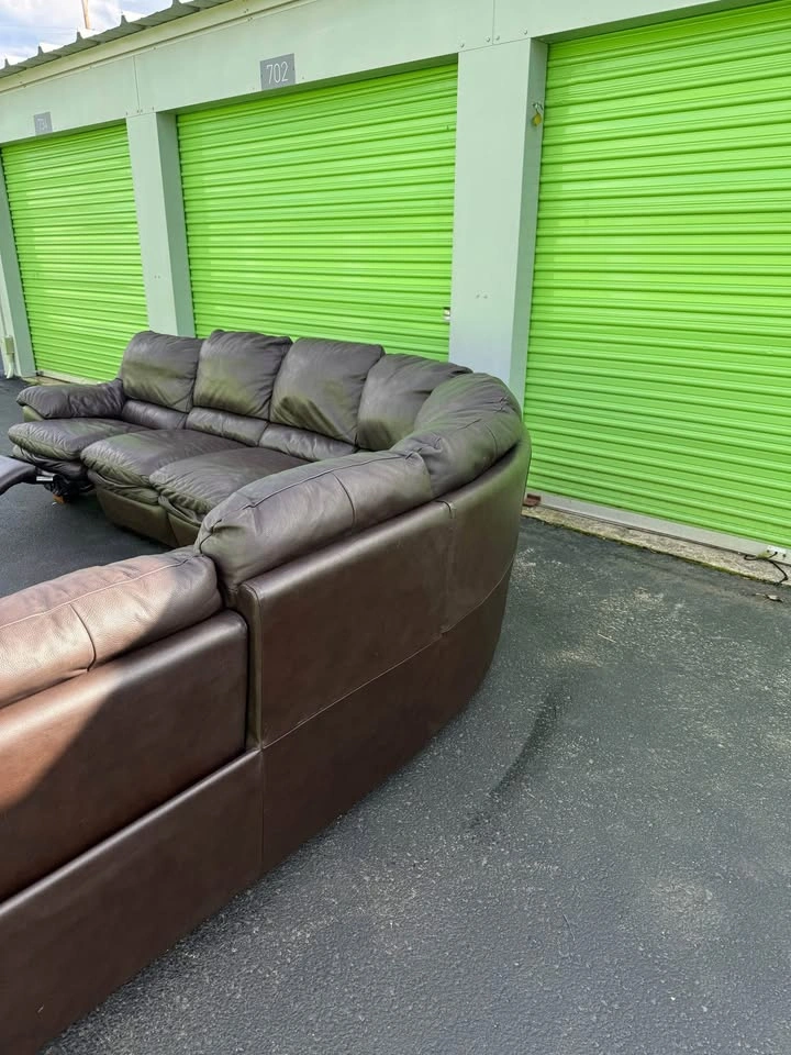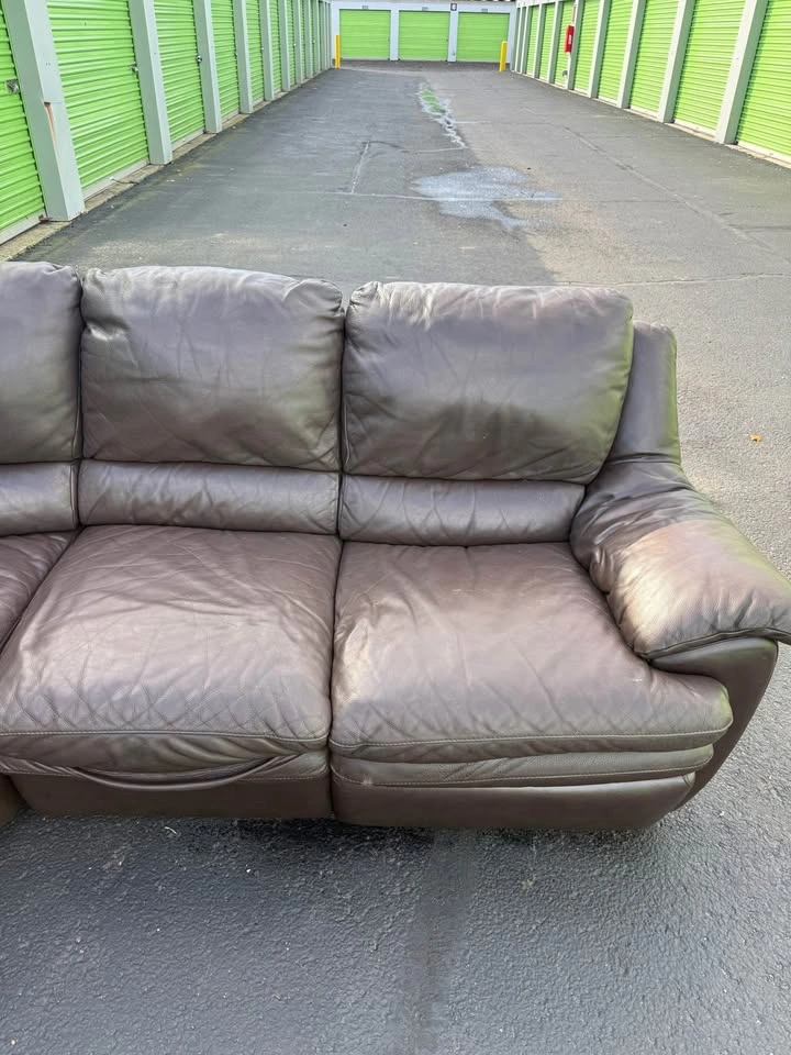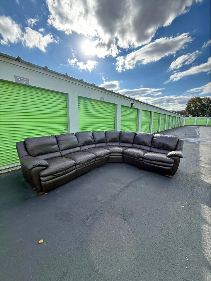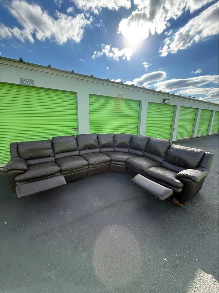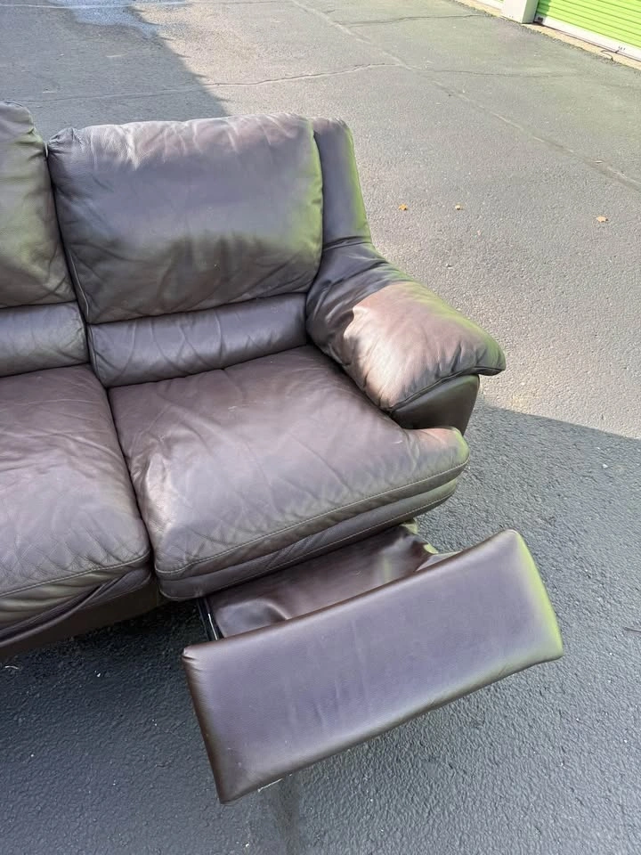 15Natuzzi Brown Leather Sectional, about 127 X 100”. Breaks apart into 4 pieces, has a smaller piece if you want to adjust what side is the longer side. Has some wear but still plenty of life left. Premium Italian leather Natuzzi sectional with dual recliners — retails $4,000+