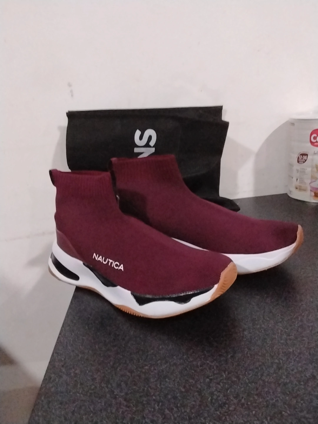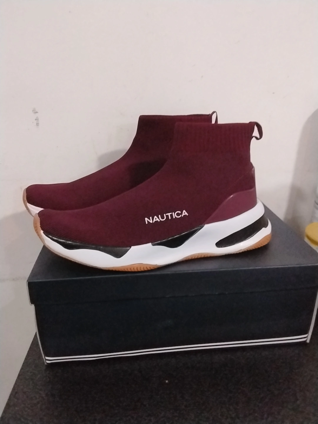 Selling a pair of Nautica sock sneakers in burgundy. They come with the original box. Great for everyday wear!