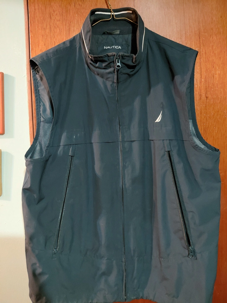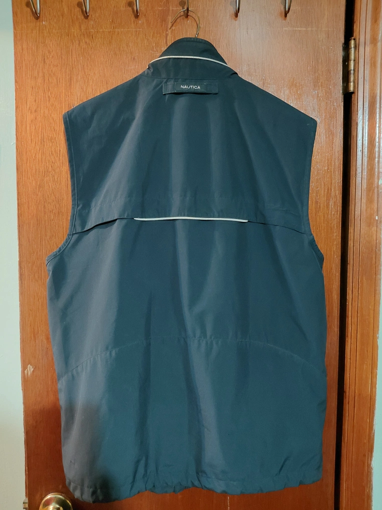 60Here's a Nautica navy blue vest in size M! It's in great condition and ready for a new home. Perfect for layering or wearing on its own when the weather is mild