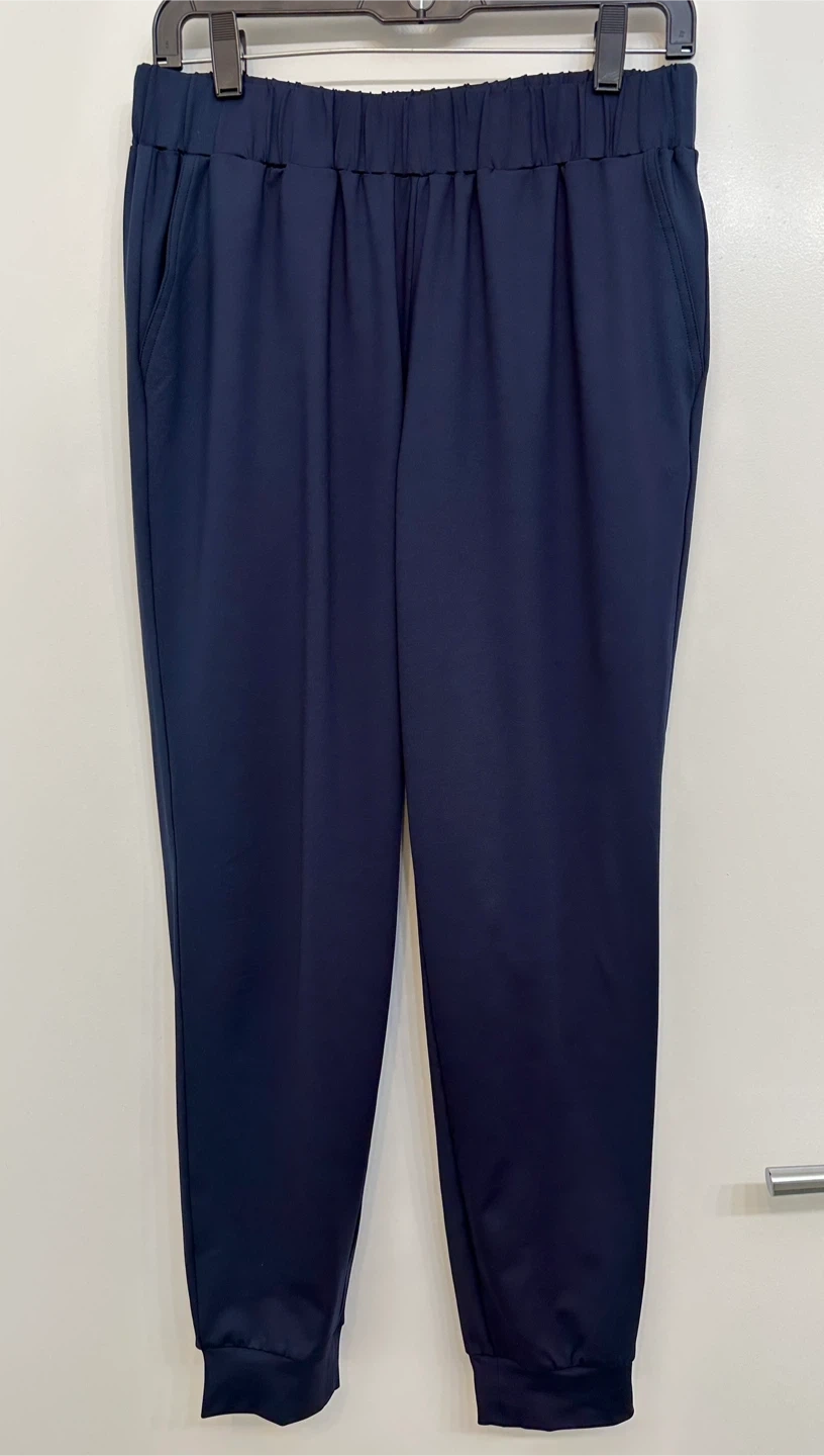 1000+These navy blue jogger pants are in great condition! They feature a comfortable elastic waistband and a streamlined design. Perfect for lounging or a casual outing, these joggers offer both style and comfort. No label and tag.