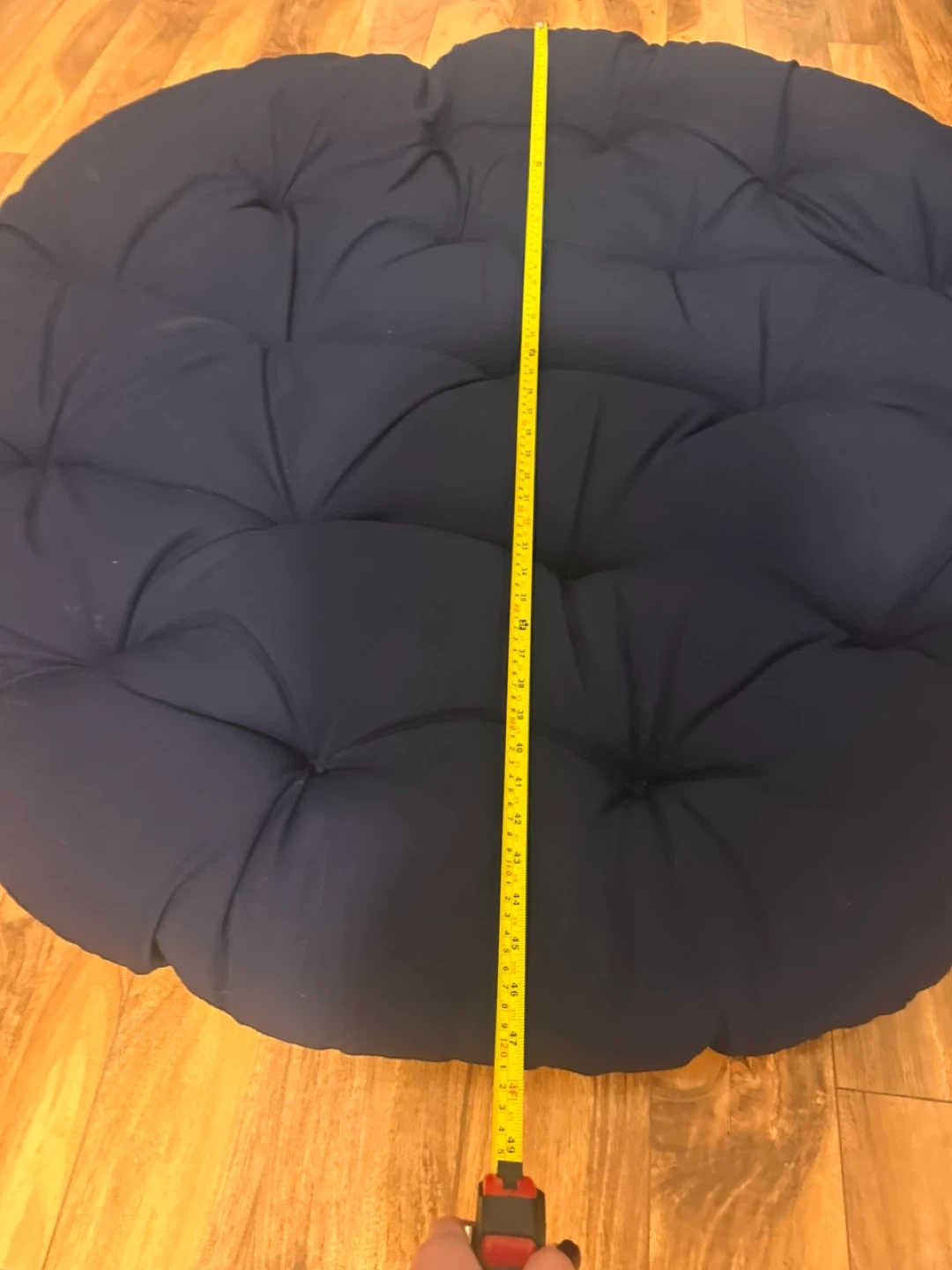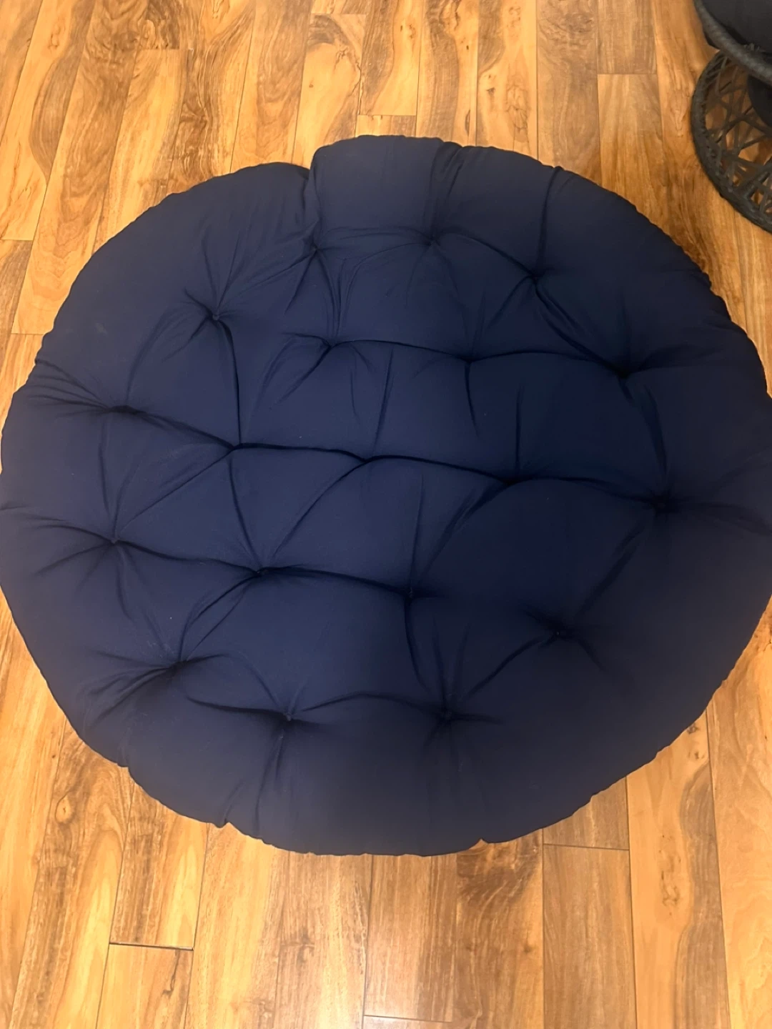 Selling a comfy papasan chair cushion! It's a nice navy blue color and measures about 48 inches in diameter. Perfect for adding some extra comfort to your papasan chair