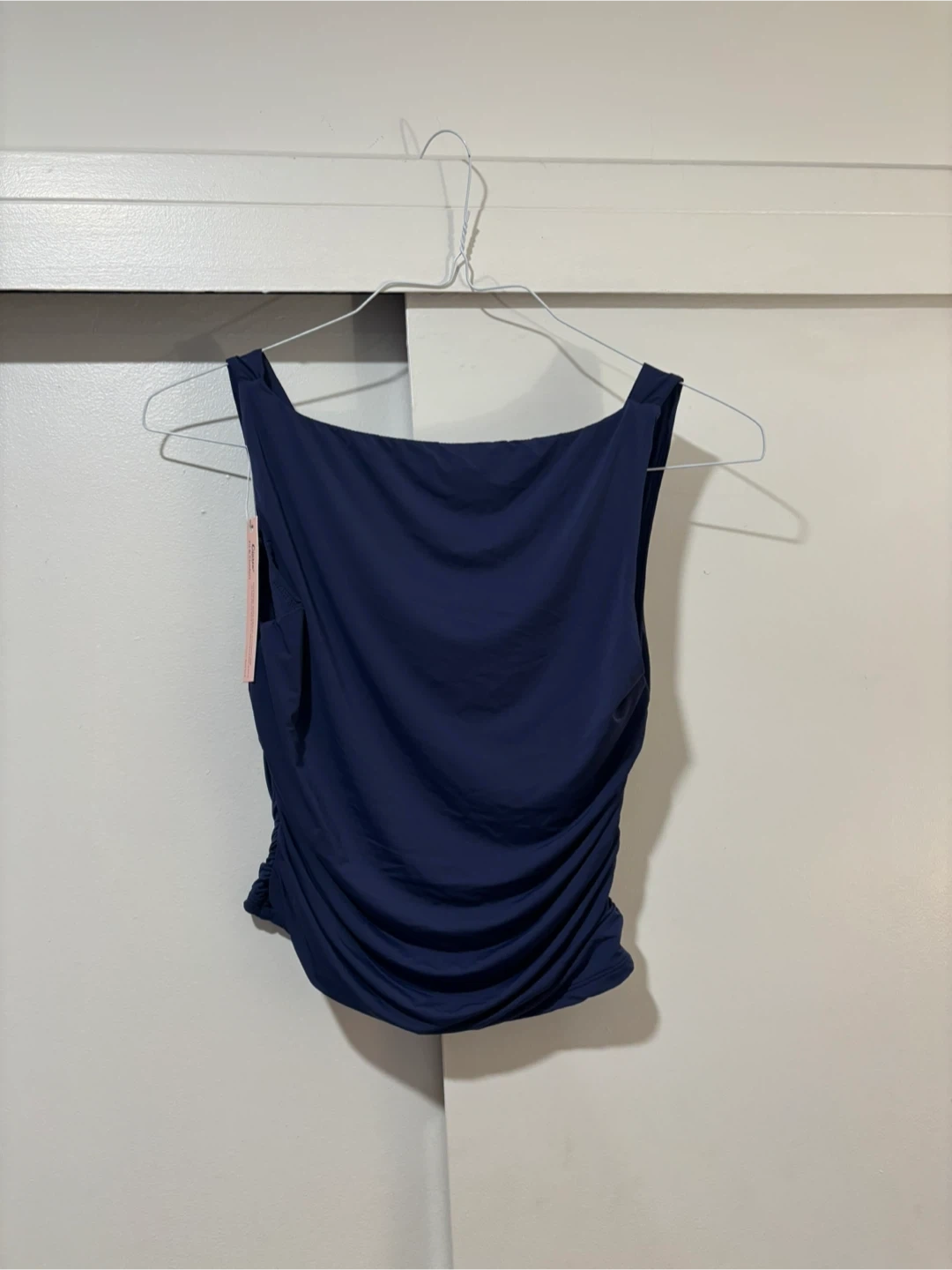 85Navy double lined tank top, brand new with tags. Can be worn two ways: Cowl neck or off the shoulder top. Super flattering material and fit. #goingouttop #falltop #croptop #skims #zara