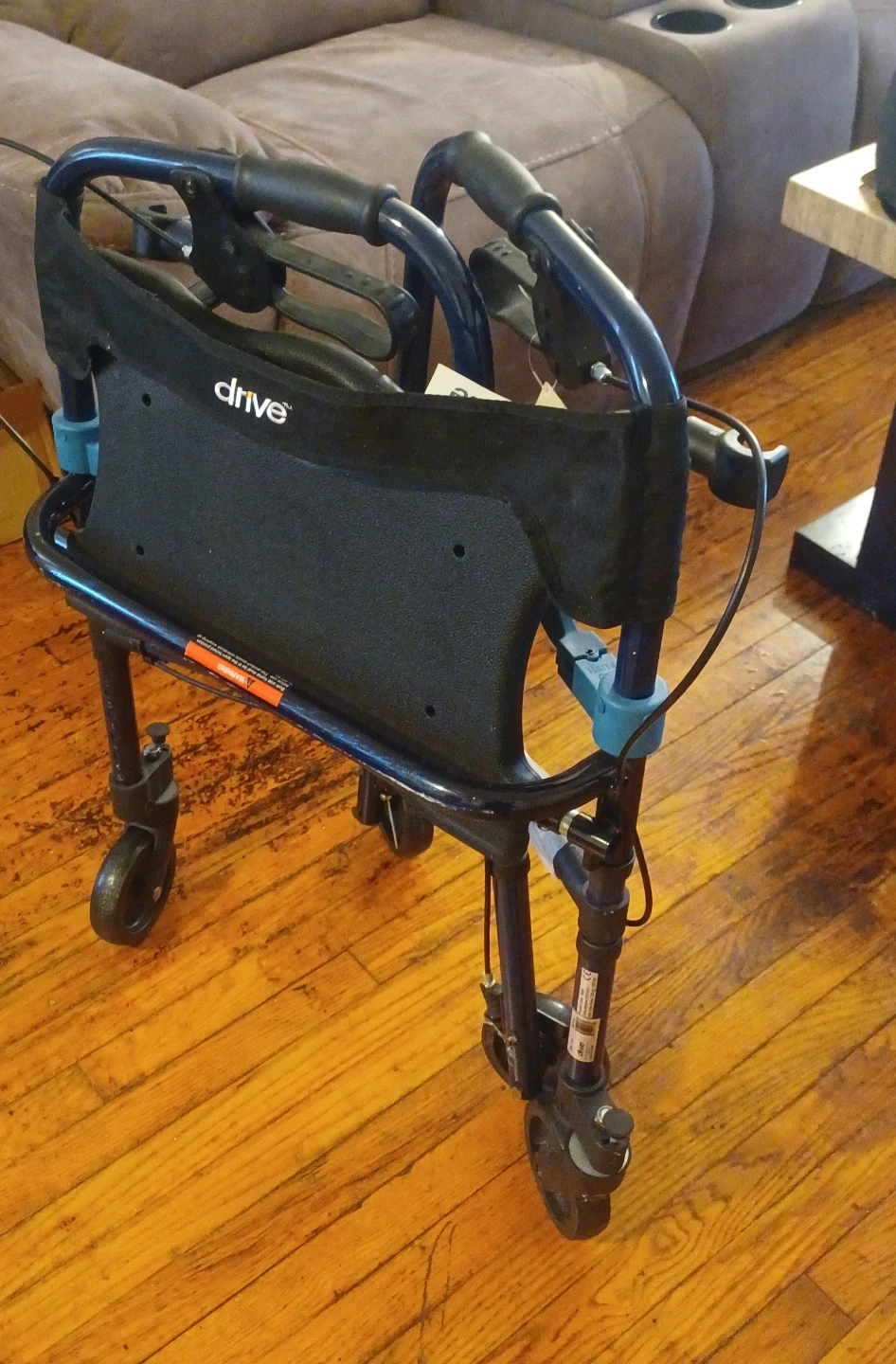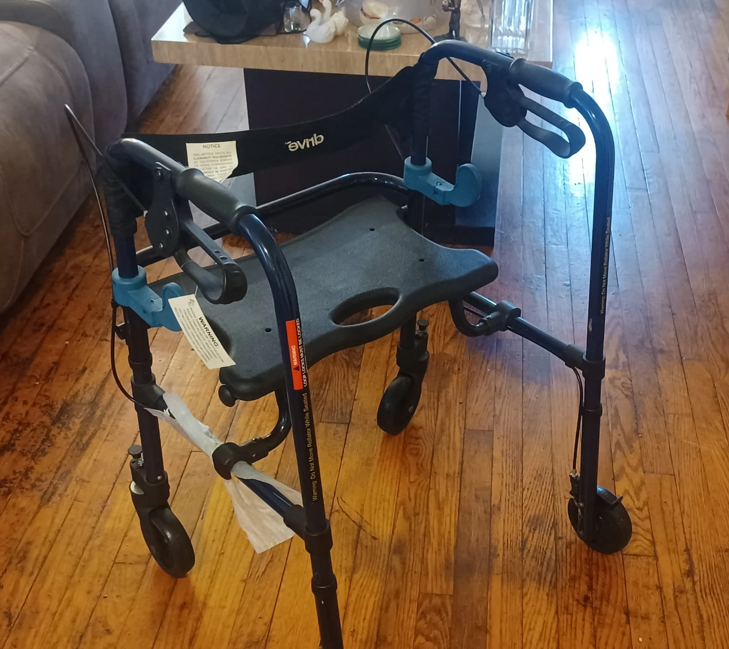 Selling a Drive Medical walker, perfect for anyone needing a little extra support. It features a comfortable seat for resting and sturdy wheels for easy mobility. It's in great condition and ready to help you get around with confidence!