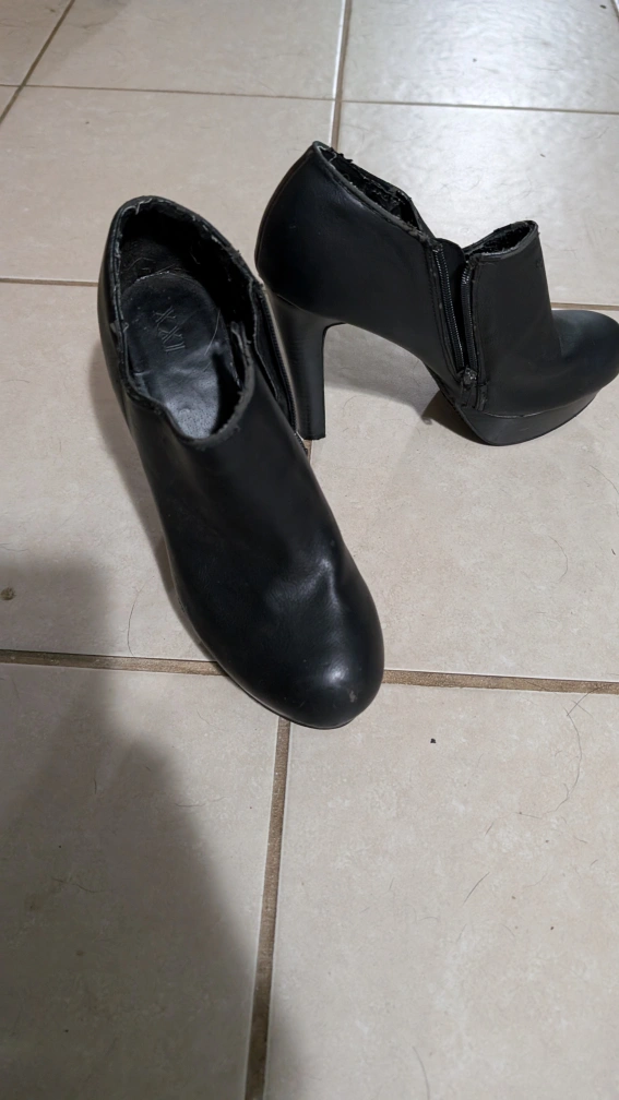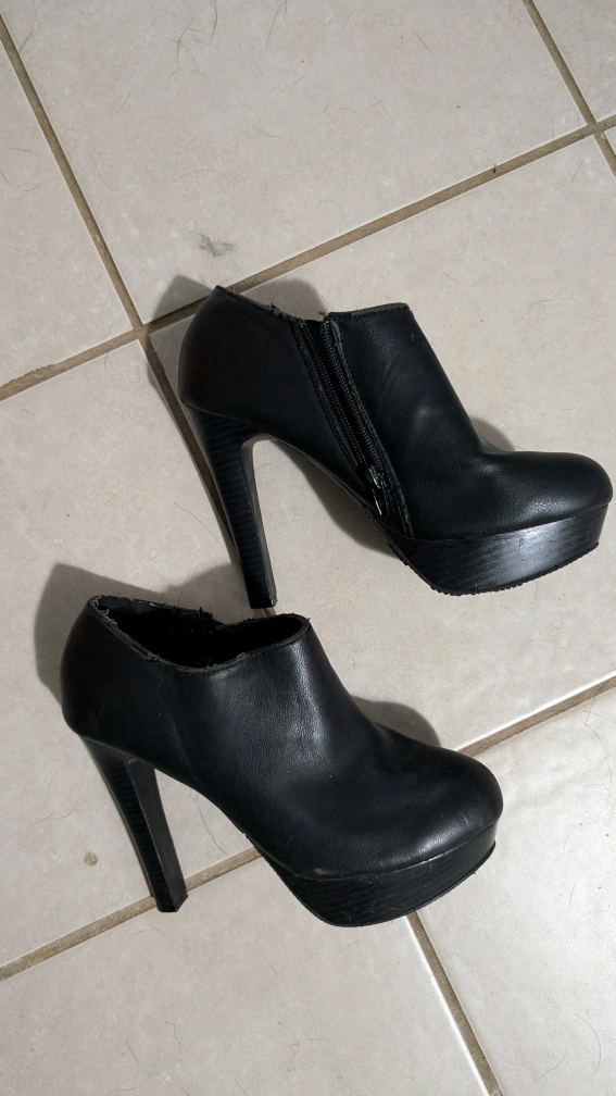 Women's size 8 black ankle booties with a zipper on the side. They have a platform and high heel. From home with dogs. North Center (Chicago) near Damen & Montrose