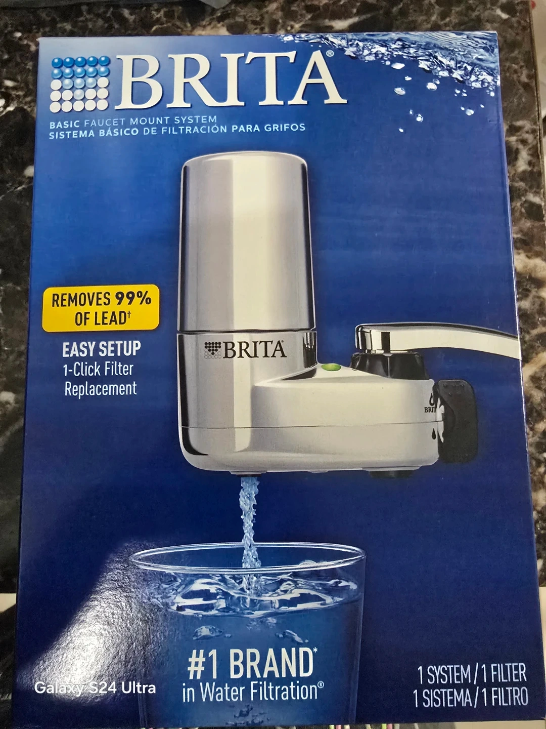 Selling a Brita Basic Faucet Mount System! This system provides cleaner, great-tasting water for over 30 years. It's easy to install and fits all standard faucets. You can replace up to 2,250 bottles each year with Brita. Removes 99% of lead and offers easy 1-click filter replacement. Box included