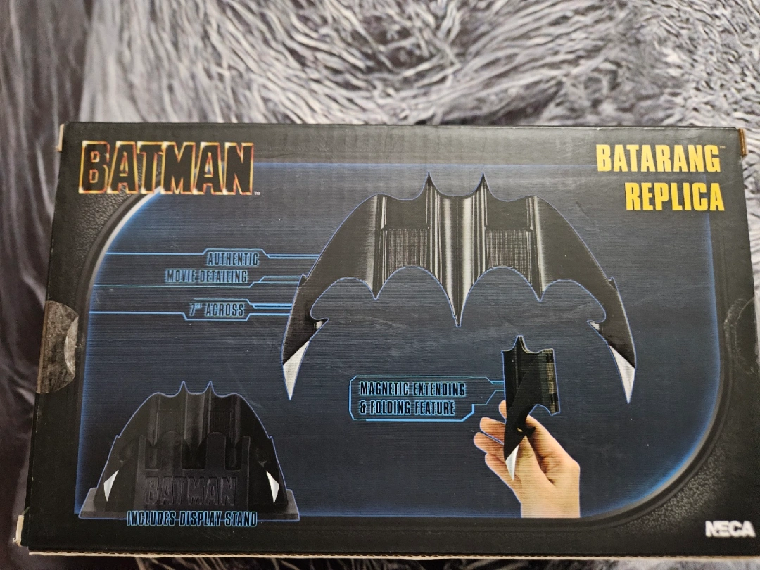 Selling a NECA Batman Batarang Replica. It's an authentic movie detailing and 17" across. It has a magnetic extending & folding feature and includes display stand. The box is included! PICK UP ONLY