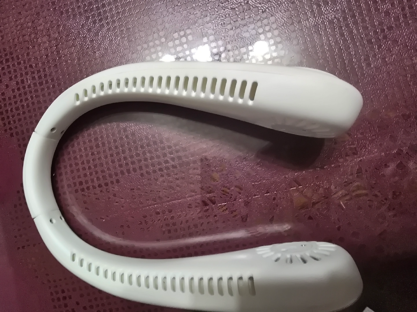 Here's a portable neck fan! It's perfect for staying cool on the go. It's lightweight and easy to use