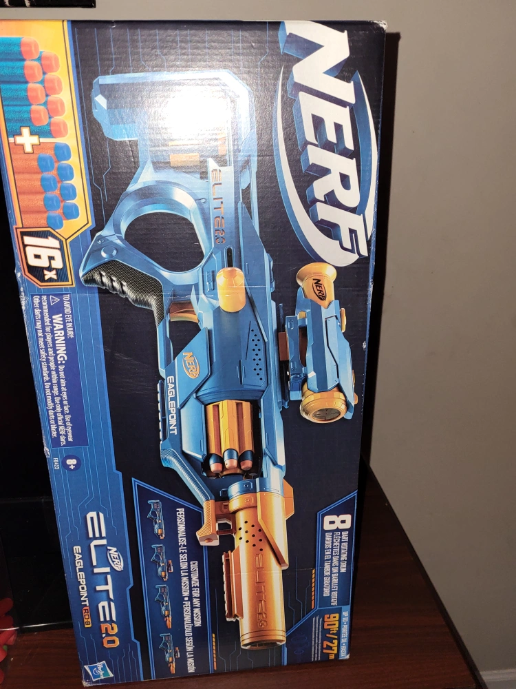 65Selling a Nerf Elite 2.0 Eaglepoint RD8 blaster! It comes with 16 darts and has an 8-dart rotating drum. Also included is a Dart Zone dart refill with 200 universal darts that go up to 90ft *20 bullets are missing*