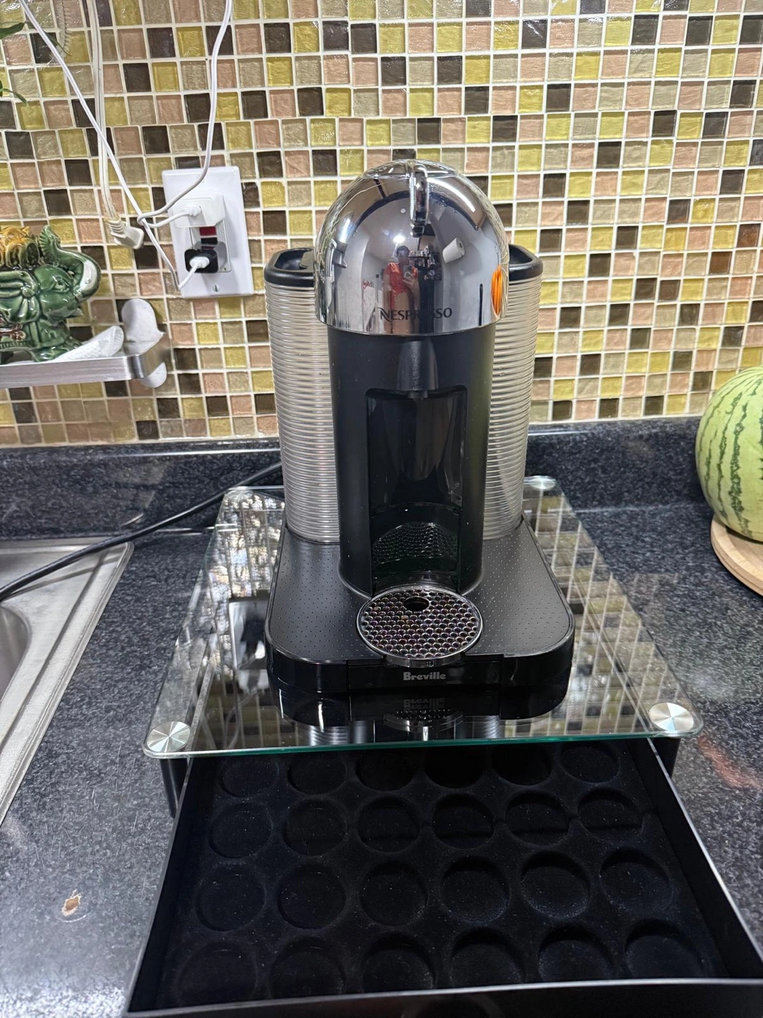 Selling a Nespresso coffee machine made by Breville! It's in great condition and ready to make delicious coffee. Perfect for a quick and easy caffeine fix at home. Very clean!
