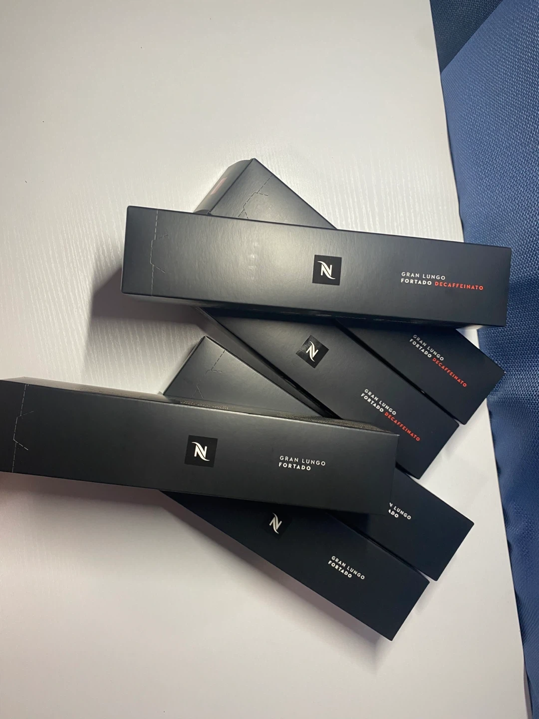 65Nespresso Gran Lungo capsules! I have both the Fortado and Fortado Decaffeinato varieties available. Perfect for a rich and flavorful coffee experience at home