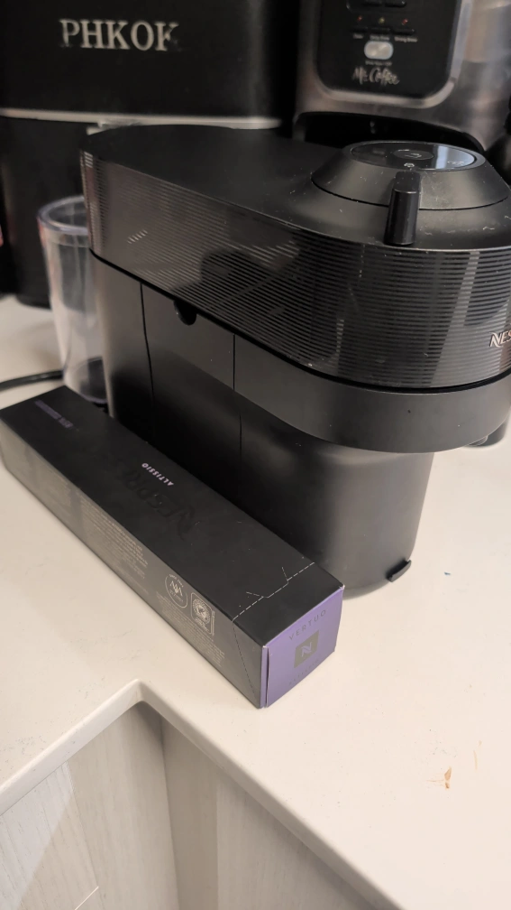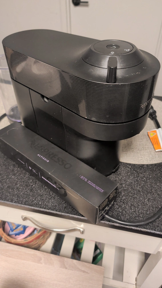 Selling a Nespresso Vertuo coffee machine. It's in great condition and ready to make delicious coffee! It's black and comes with a box of Altissio capsules