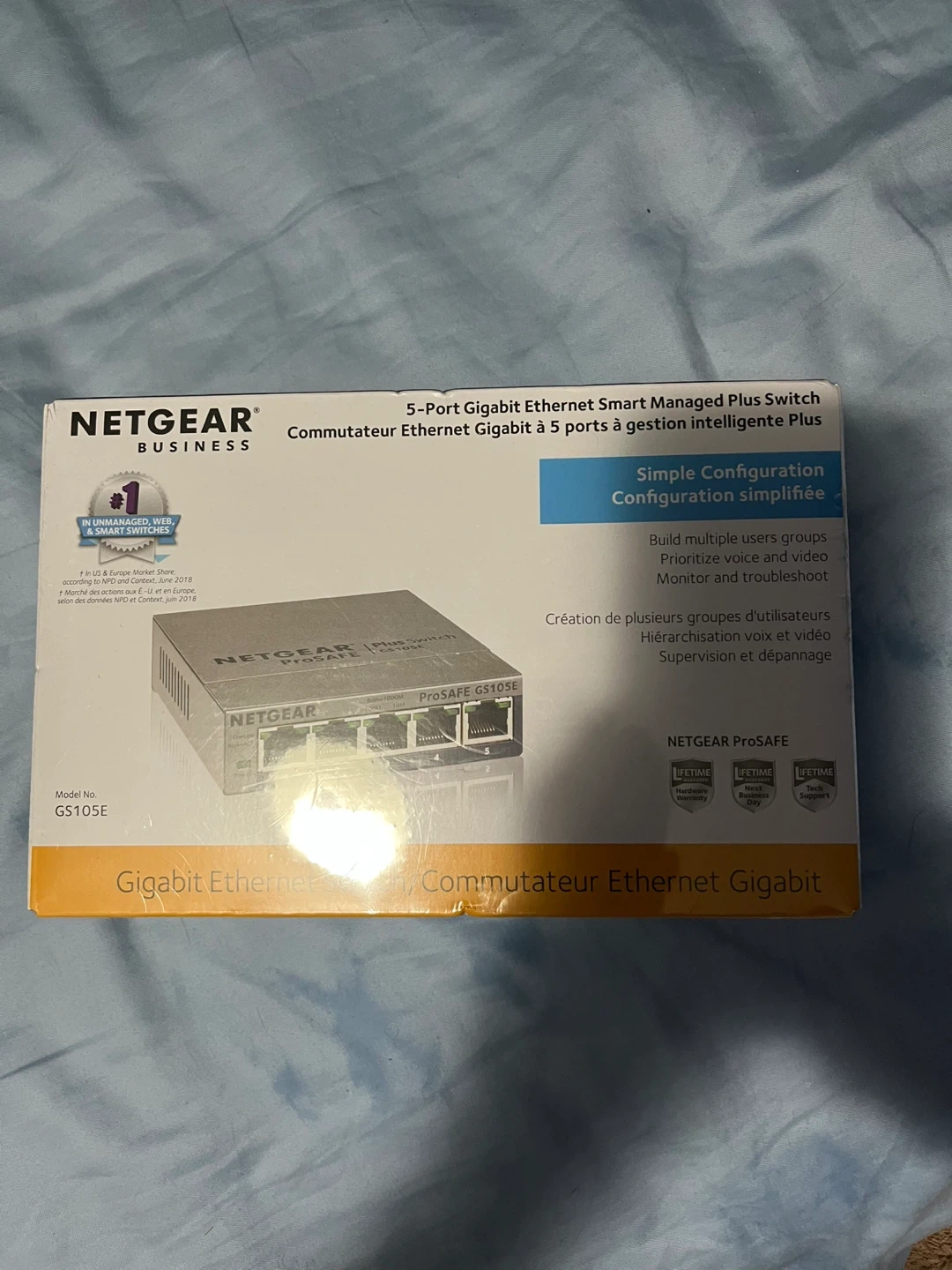 80Selling a NETGEAR GS105E 5-Port Gigabit Ethernet Smart Managed Plus Switch. It's in great condition and comes in the original box. This switch allows you to build multiple user groups, prioritize voice and video, and monitor and troubleshoot your network. It also offers simple configuration. Perfect for home or small business use!