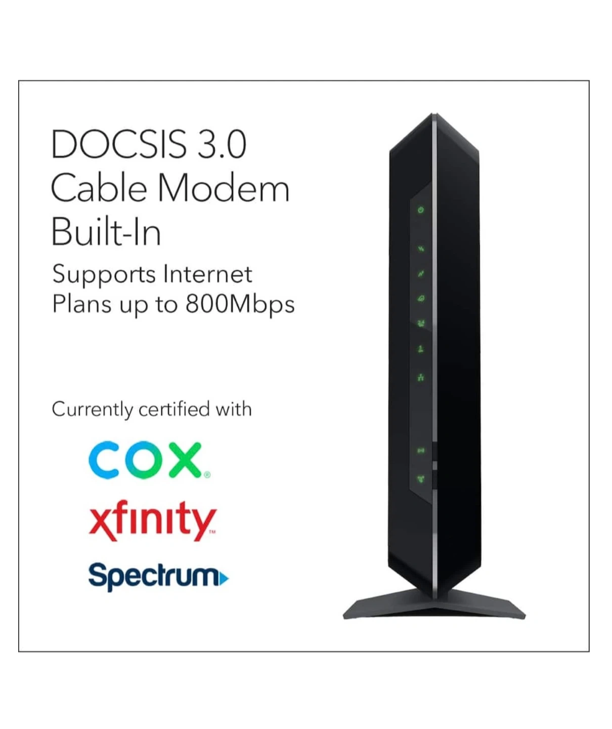 Selling a Netgear Nighthawk C7000 WiFi 5 Cable Modem Router. It can handle up to 30 concurrent devices and provides coverage up to 1,800 sq ft. It has a WiFi speed of up to 1.9 Gbps.