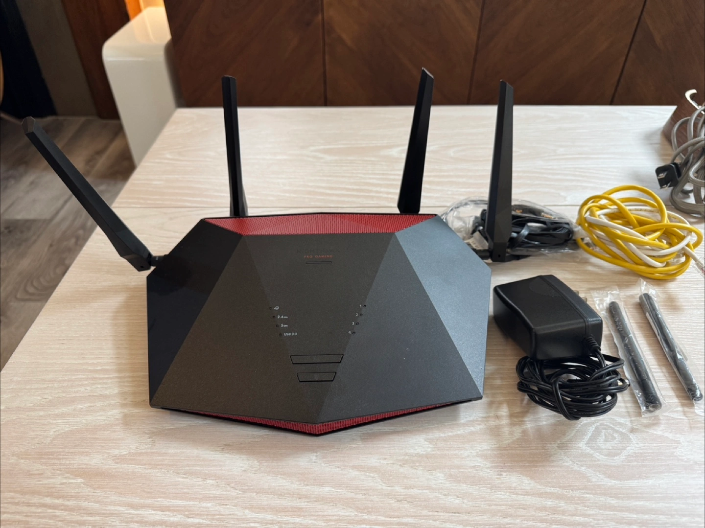 I am selling a gaming router. It has multiple antennas. There are also some accompanying cables and a power adapter. Paid $300 for original