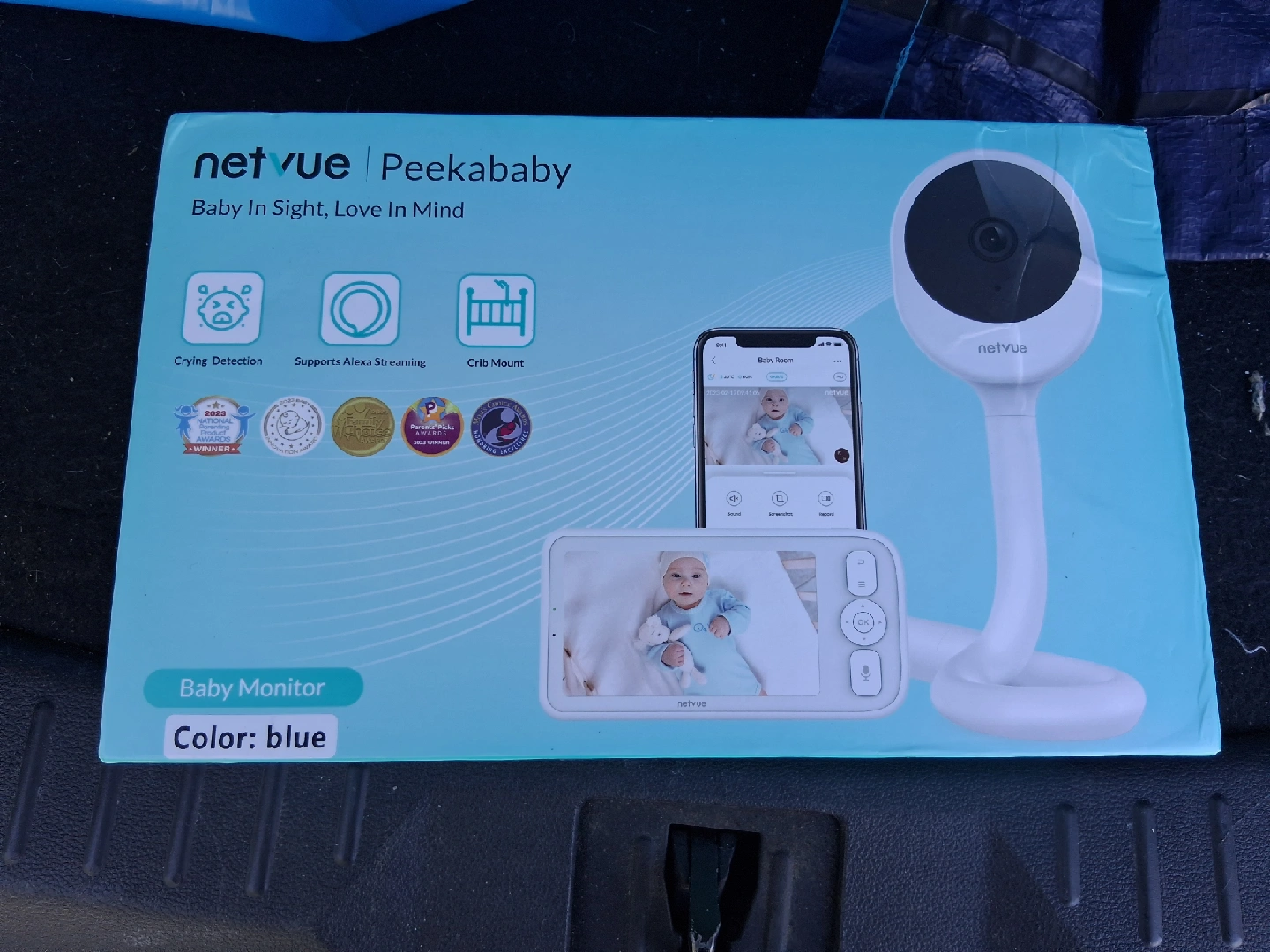 Selling a Netvue Peekababy baby monitor in blue! It's in great condition and comes with all the original components and box. This monitor offers crying detection, supports Alexa streaming, and includes a crib mount. The user manual is also included to help you get started. It's designed to give you peace of mind with your baby monitor