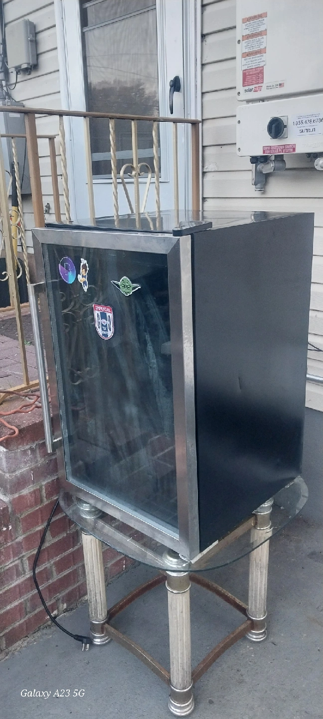Nevera pequeño No tiene freezer solo es nevera Mantiene Las cosas frías Yo la cambié porque necesitaba una con Freezer Ahora que me Movi de casa solo Las parrillas se me perdieron pero Le corte 2 pedazos de pasta Para hacerle divisiones Las parrillas se pueden conseguir... dentro de la nevera Hay un medio hundio Hundido para información llamar a este número 6318 358203