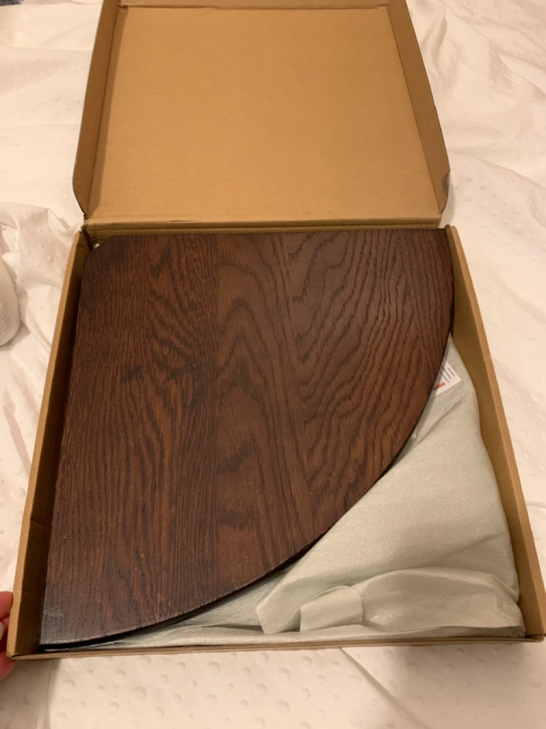 68Selling a brand new 12-inch corner shelf, perfect for your living room or office! It's still in the box with all the necessary hardware and instructions included. The shelf has a nice, dark wood finish that would look great in any space