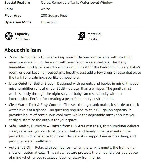 New~2 in-1 Humidifier & Diffuser, Cool Mist, Quiet