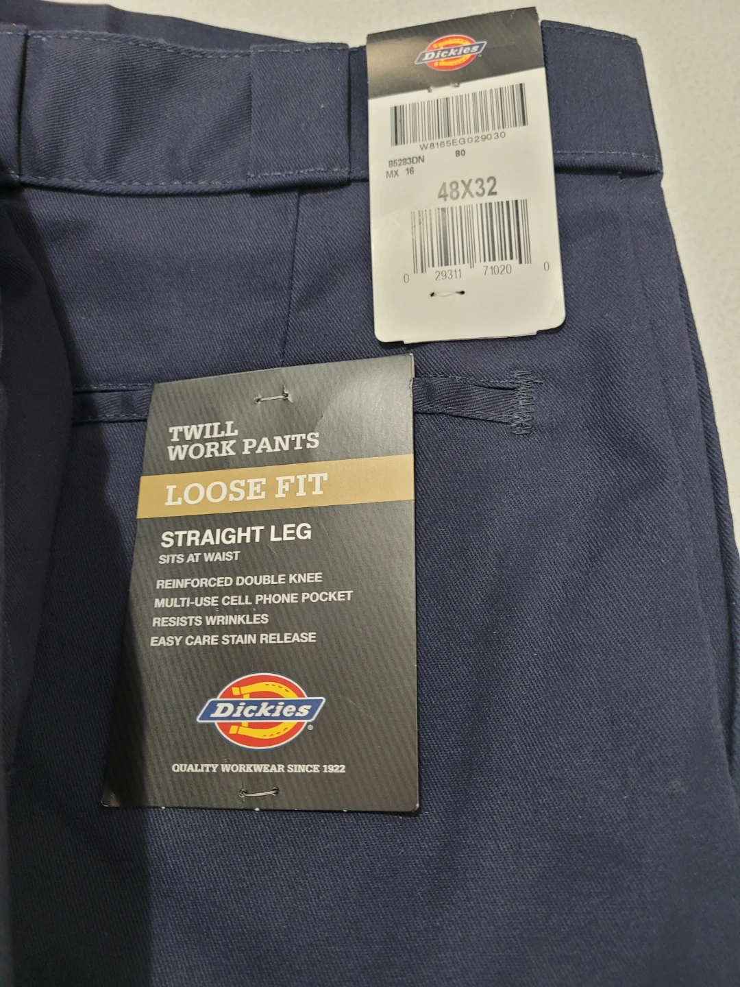 New 2 Mens Dickies FLEX Loose Fit Work Pants 48X32 Navy Blue