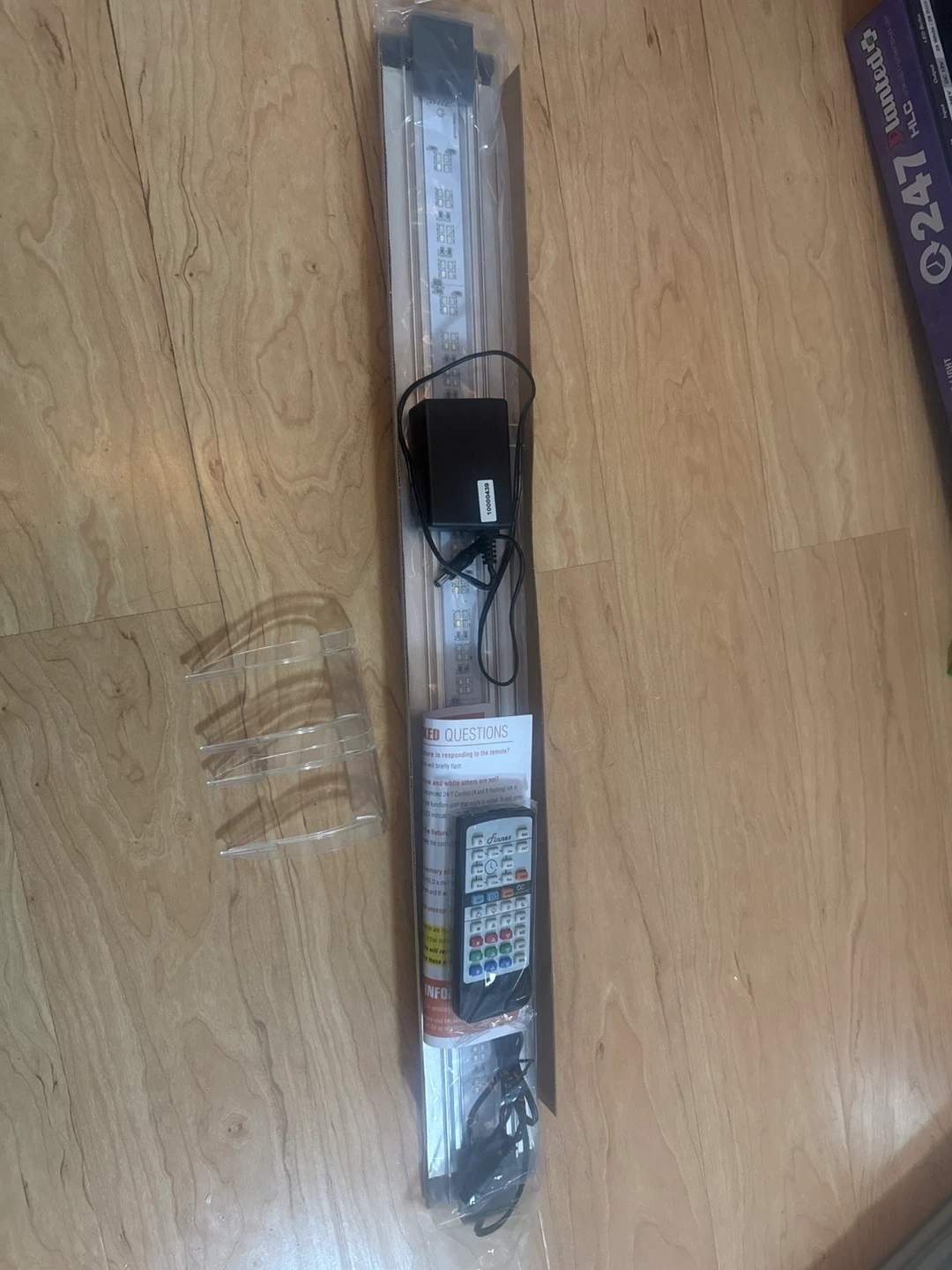 Selling a brand new 247 Planted HLC aquarium LED light! It comes with the box and all original components, including the remote and power adapter. This light is perfect for planted tanks and can be programmed to simulate sunrise and sunset cycles. It emits a variety of colors! Used only one month.