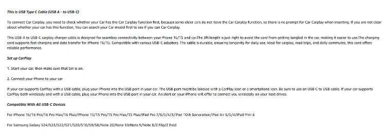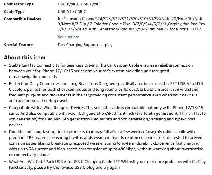 USB to USB C Cable for iPhone 17/16/15 Car Charger, 2Pack 3ft Carplay Cord Fast Charging for iPhone 17/16/15 Air Plus Pro Max, iPad Pro Air (White) Perfect for Daily Commutes and Long Road Trips: Designed specifically for in-car use, this 3FT USB A to USB C cable is perfect for both short commutes and long road trips. Its durable build ensures it can withstand frequent plug-ins and movements in the car, providing consistent performance even when your device is adjusted or moved during travel. Durable and Long-lasting: Unlike products that may fail after a few weeks of use, this cable is built with premium TPE materials, ensuring it withstands wear and tear. Its reinforced connectors are tested to prevent common issues like tip breakage or exposed wires, ensuring long-term durability. Experience fast charging with up to 3A current and high-speed data transfer of up to 480Mbps, without worrying about overheating or connectivity failures Elmhurst queens or WTC NY pick up Check out my other listings too