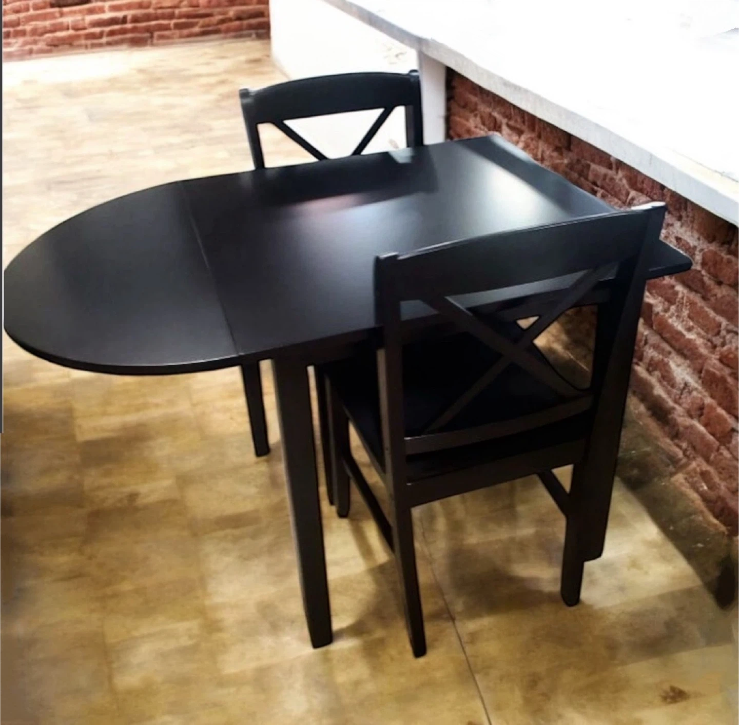 New 3 Piece Black Space Saving Drop Leaf Dining Set * Table Dimensions: 30” H x 36” L x 36” W * Chair Dimensions: 16” W x 17.9” D x 35.7” H * Set includes 2 Chairs and One Table * Table features space saving drop leaves * X-Back Chairs * Fully Assembled * Verified Trusted Seller / Read/ See My Reviews! Follow Me For Amazing Deals Listed Daily!