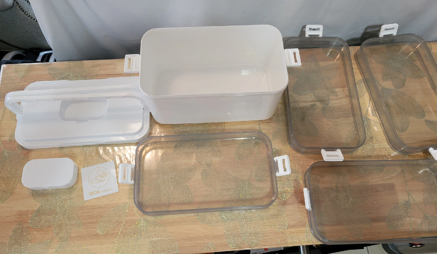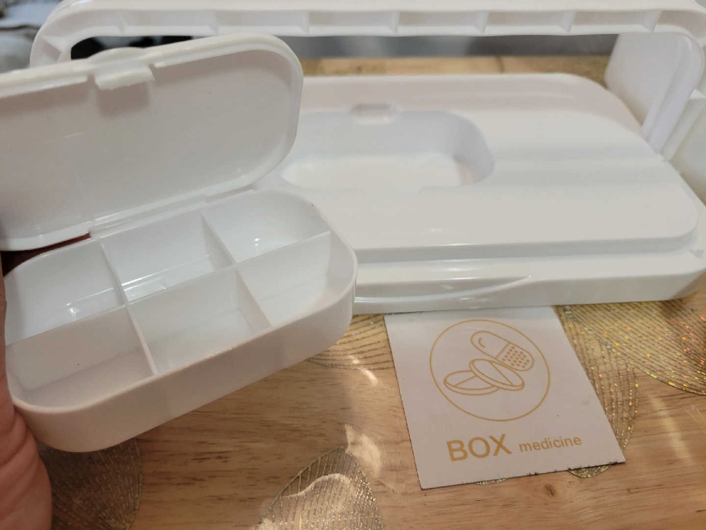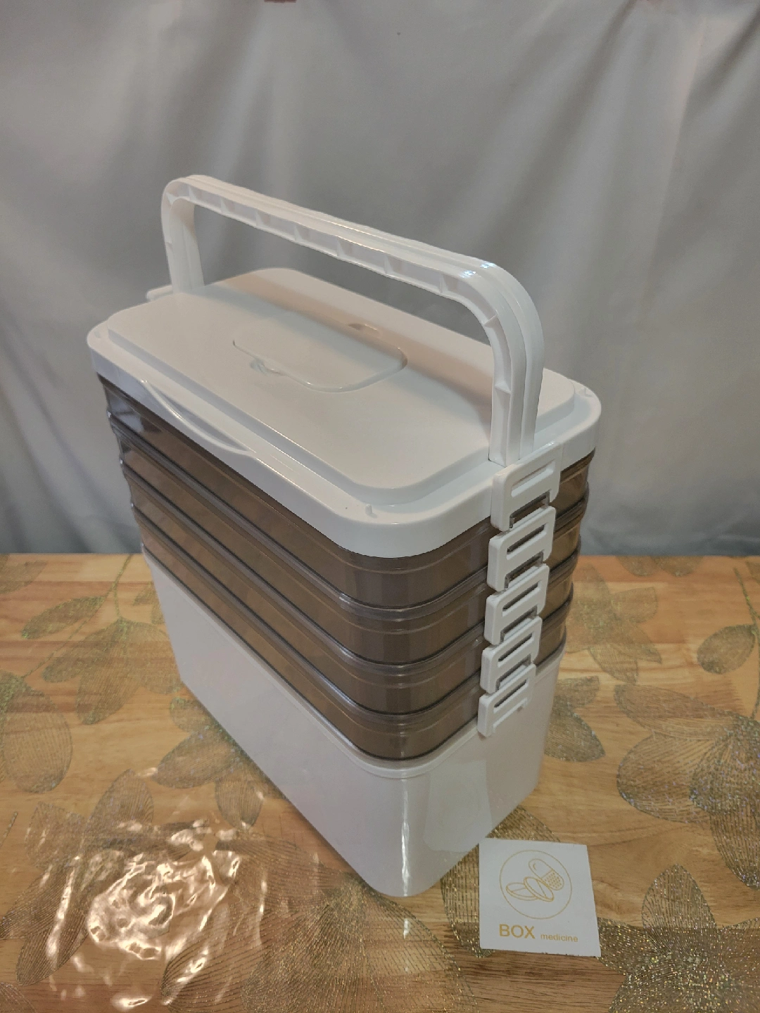 92Completely new 5-tier box organizer for medicine, screws/nuts, office supplies, crafting supplies, fishing tackle, etc. Includes 4 small boxes (1,5" depth), 1 box with 5,5" depth, portable small box Never used!!