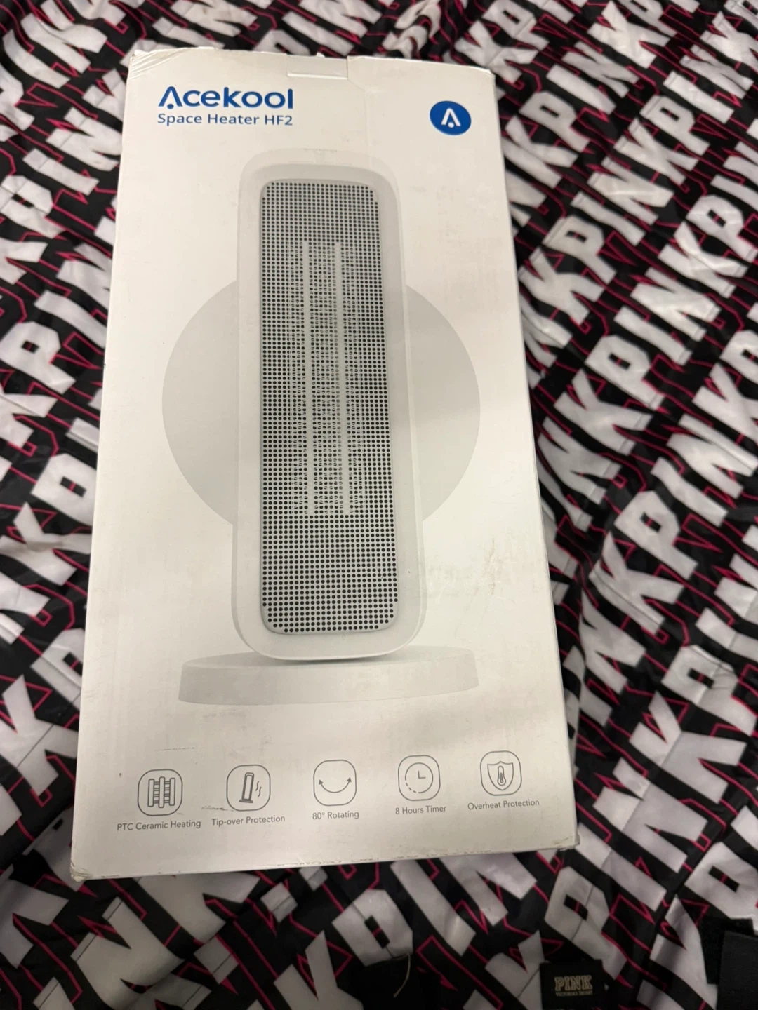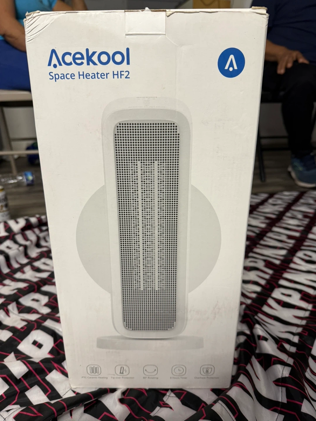 Selling a brand new Acekool Space Heater HF2! It comes in its original box and features: - PTC Ceramic Heating - Tip-over Protection - 80° Rotating - 8 Hours Timer - Overheat Protection