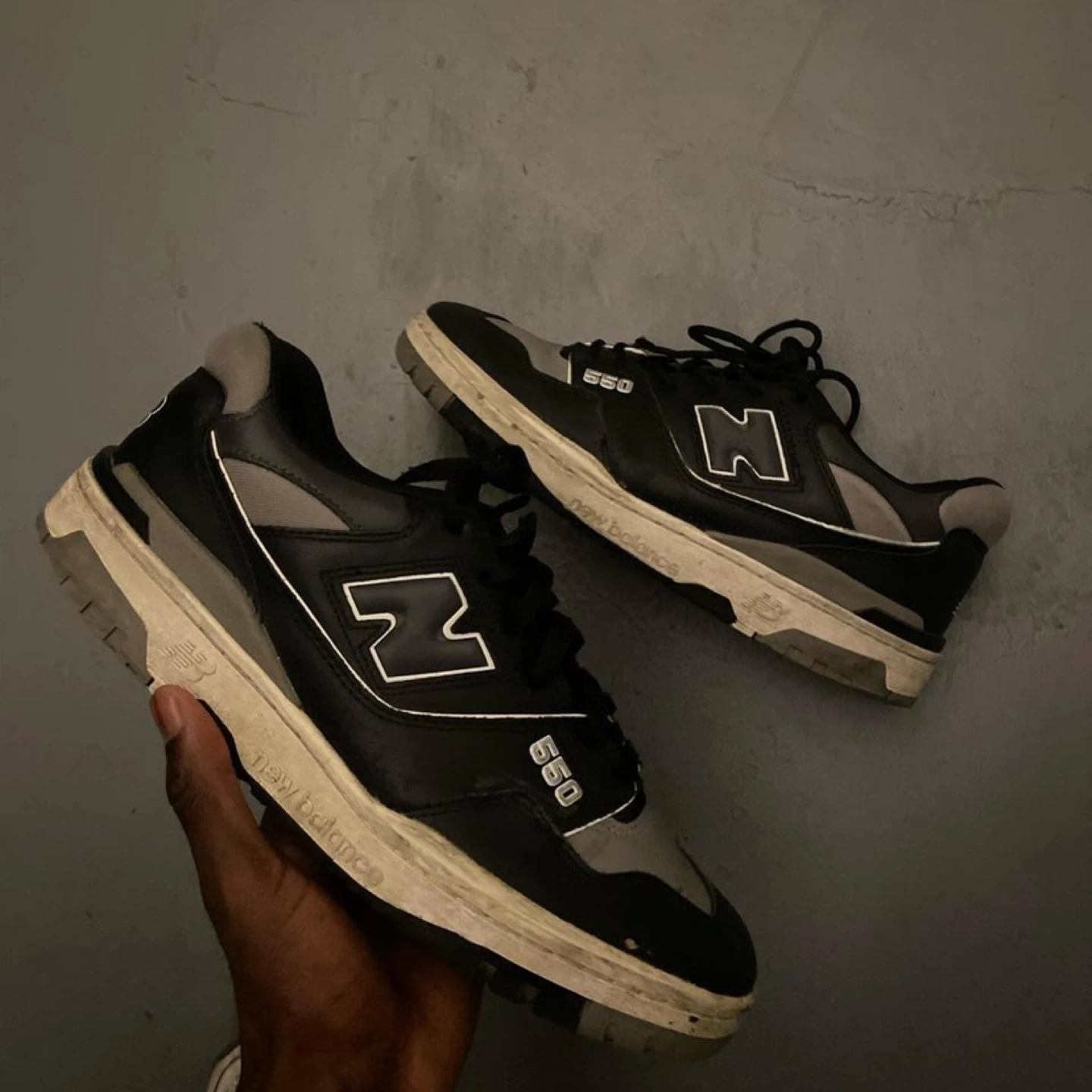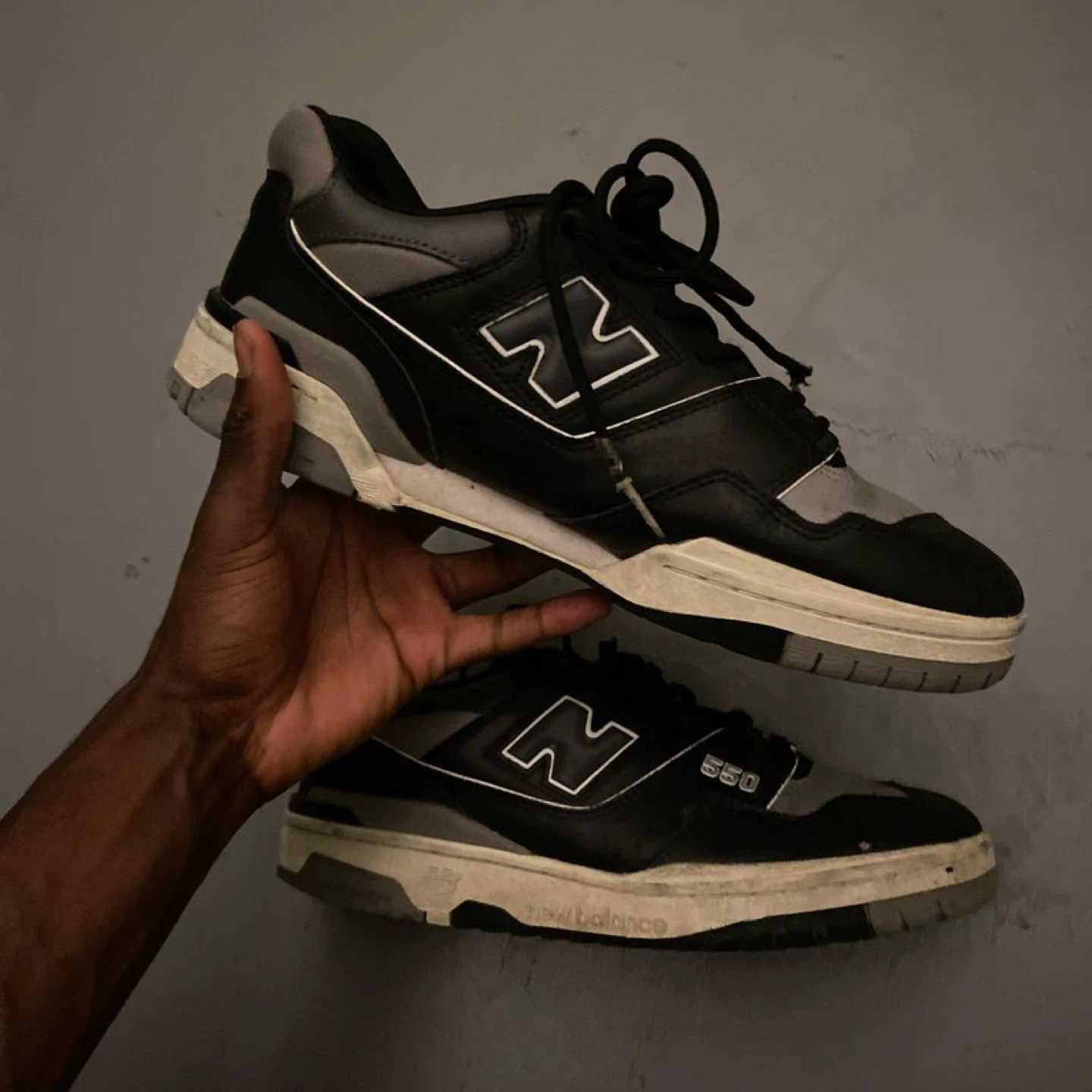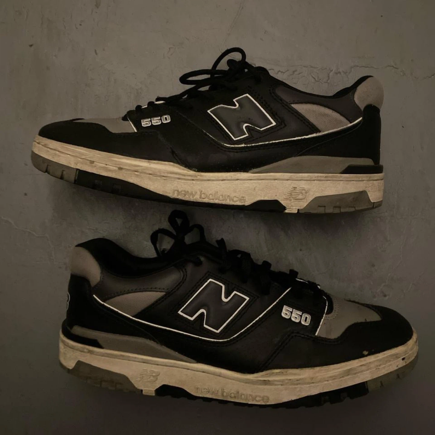Selling a pair of New Balance 550 sneakers in black and gray. They show some signs of wear, but still have plenty of life left! Great for everyday wear or hitting the gym