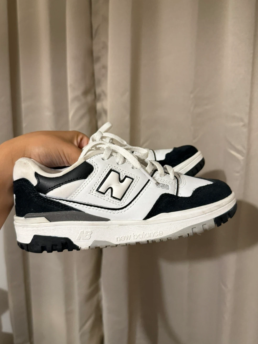 62Selling a pair of New Balance 550 sneakers in a classic white and black colorway. They're in great shape only worn a few times. they are a little kids size 2