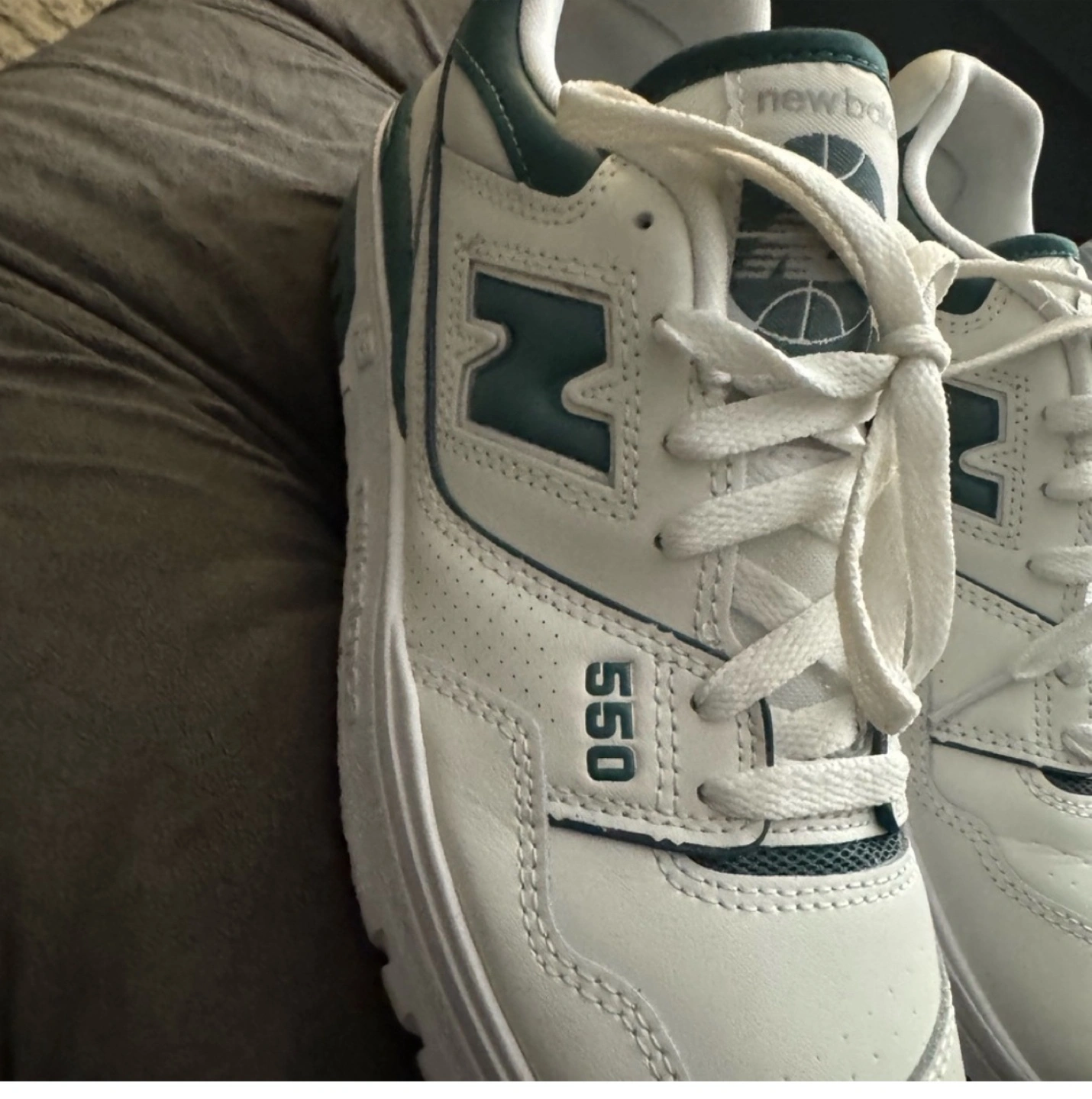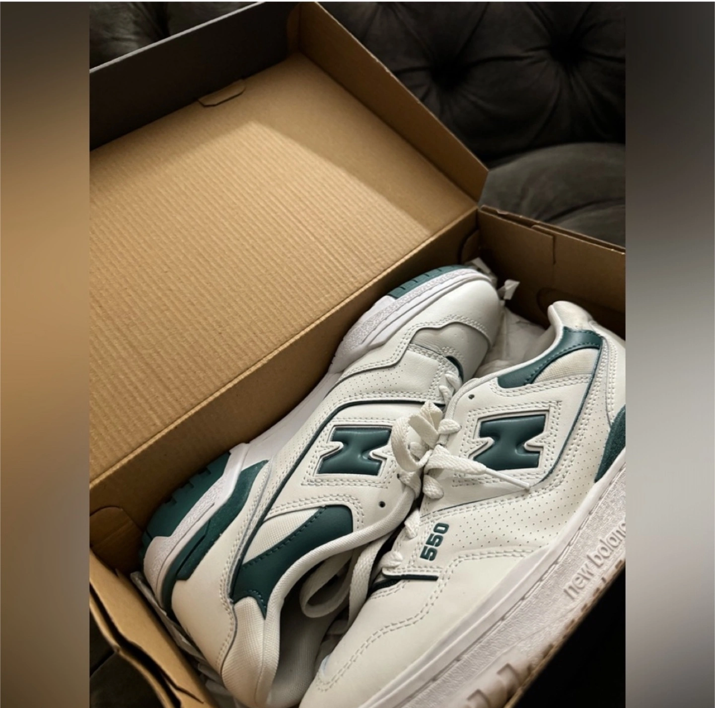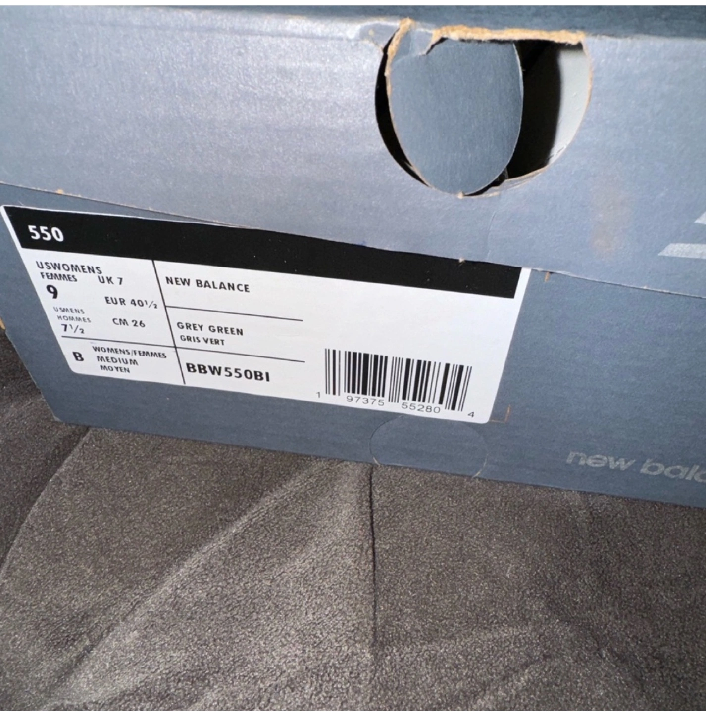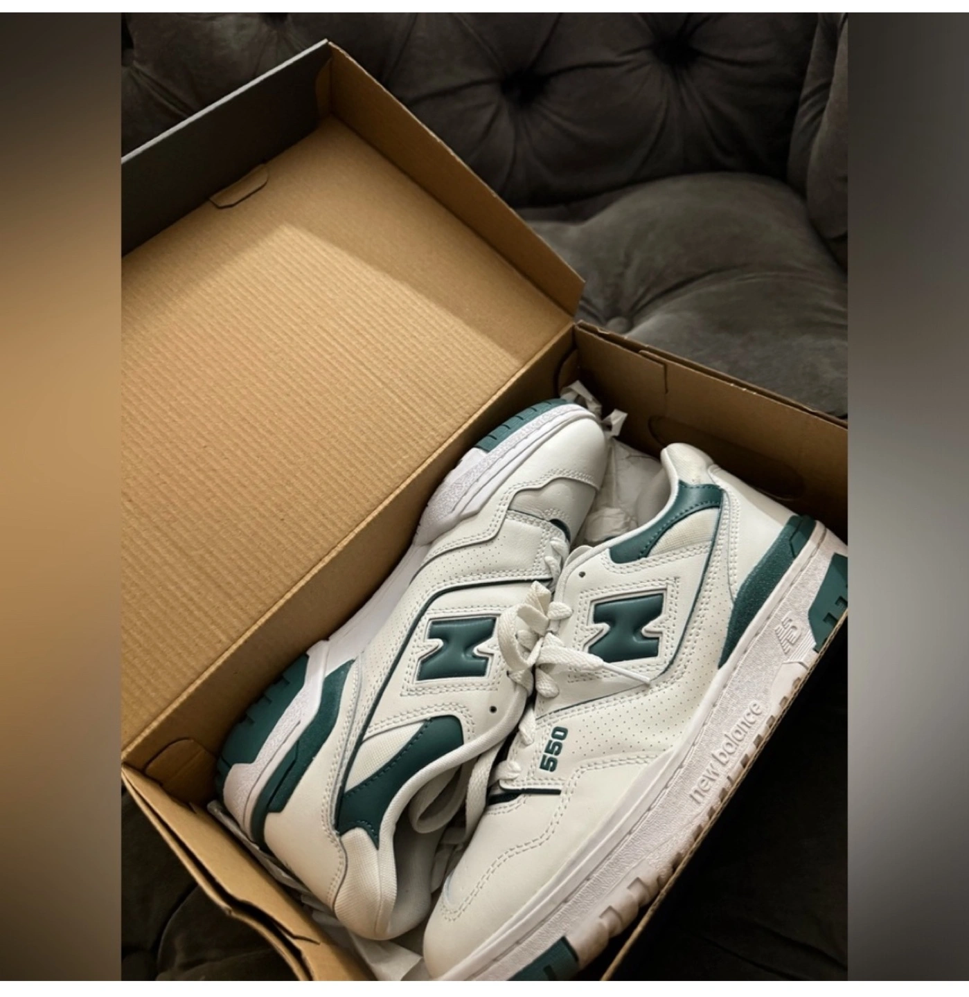 Selling a pair of New Balance 550 sneakers in white and grey green! These are women's size 9. The model number is BBW550BI. Comes with the original box