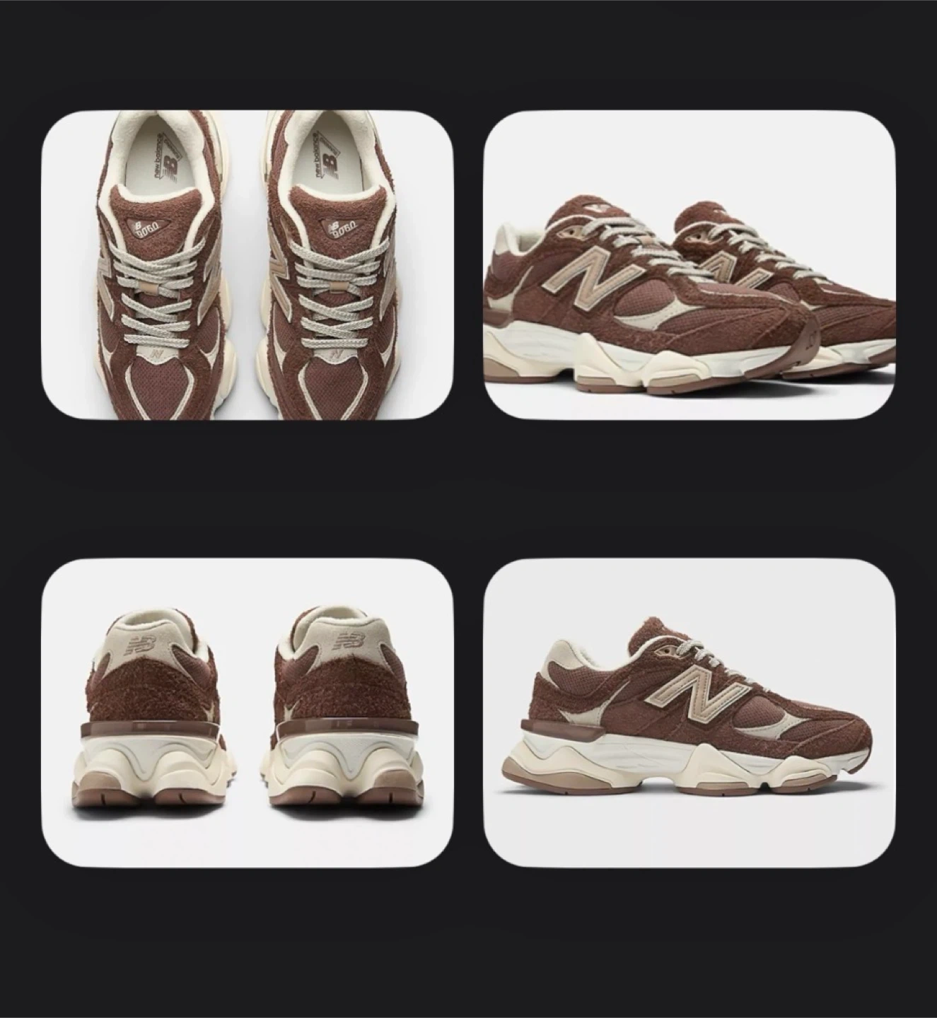 Selling a pair of New Balance 9060 sneakers in a stylish brown color. These shoes are perfect for everyday wear and offer great comfort and support. They have a unique design and are in excellent condition!