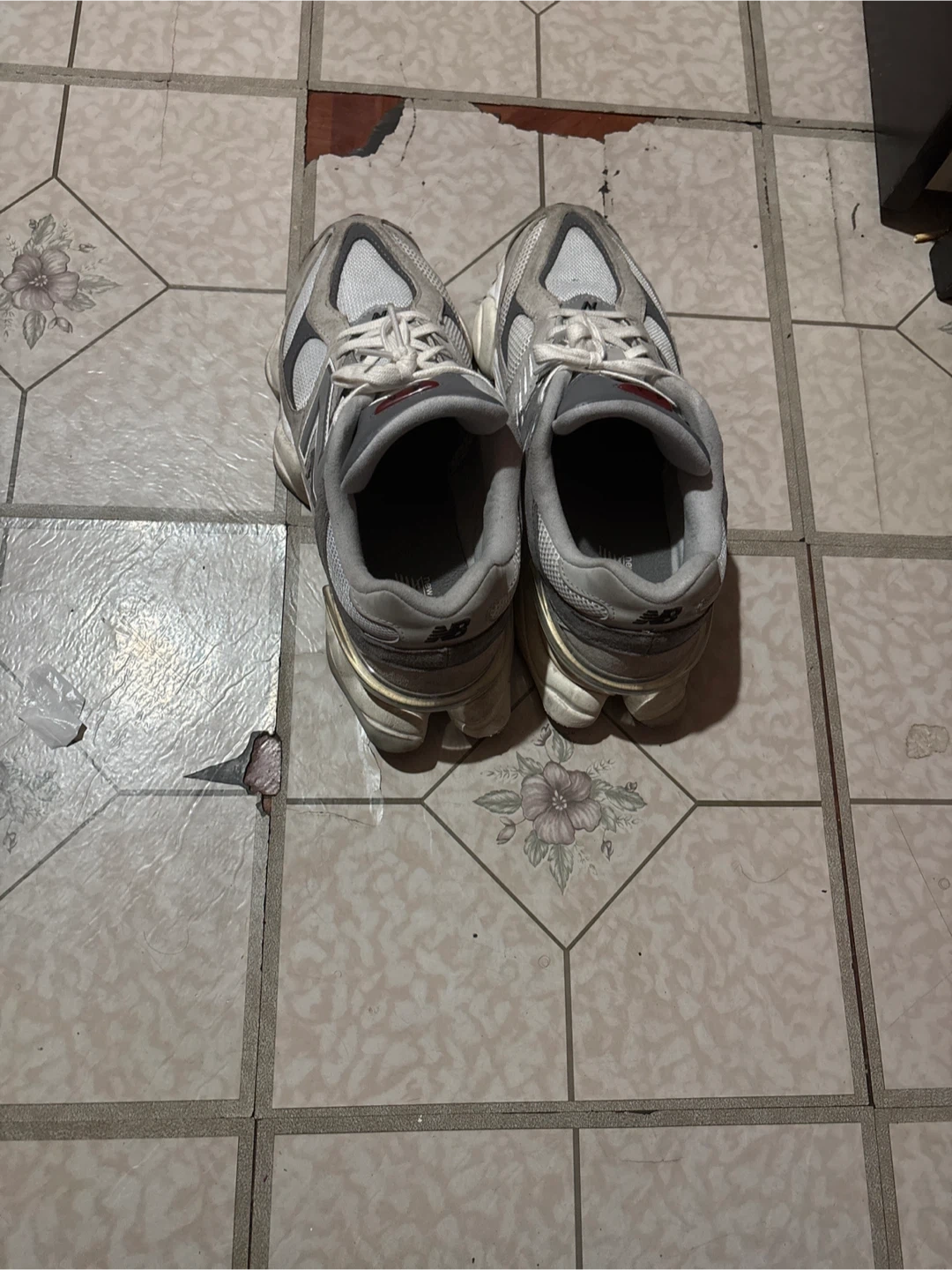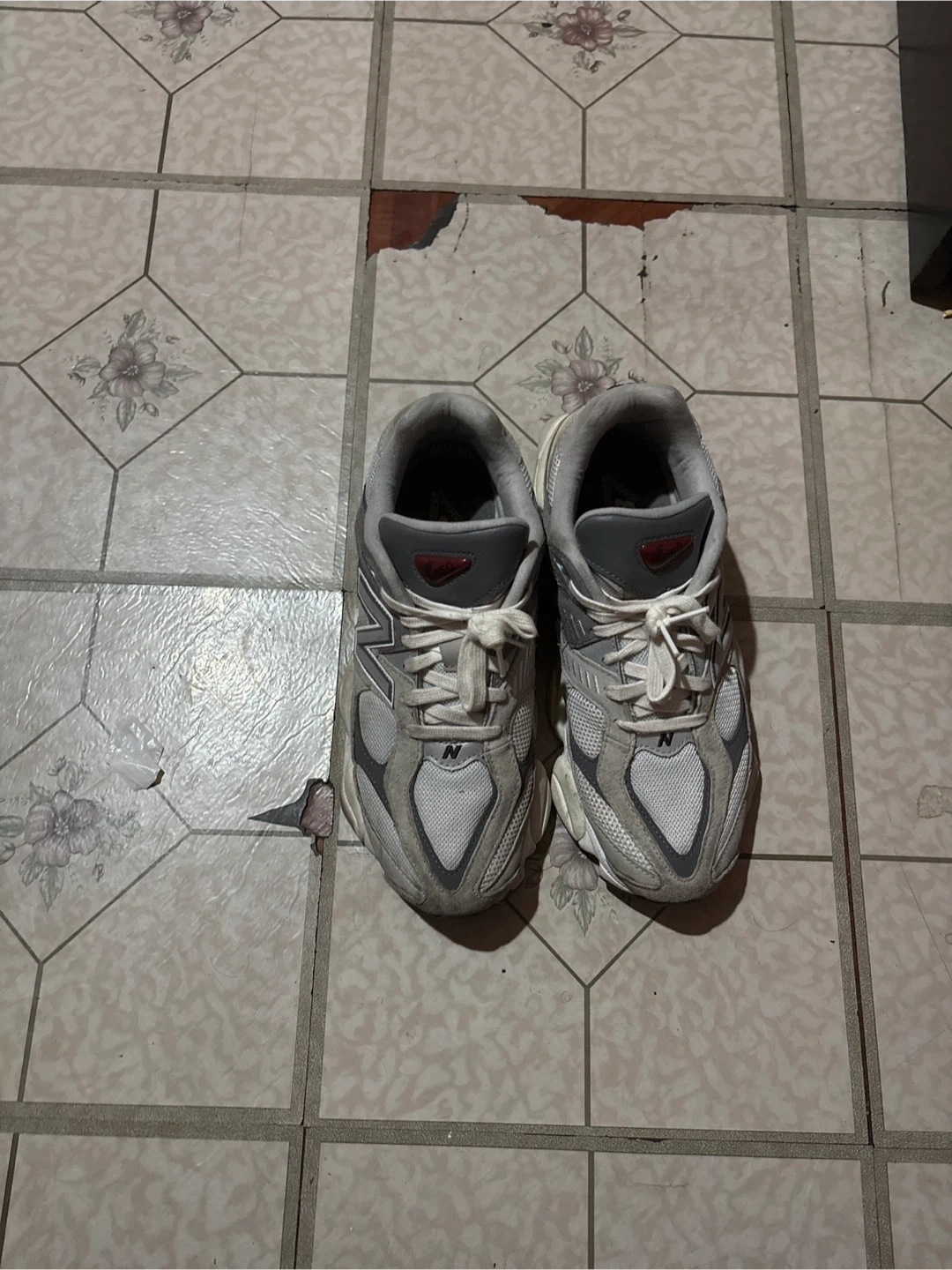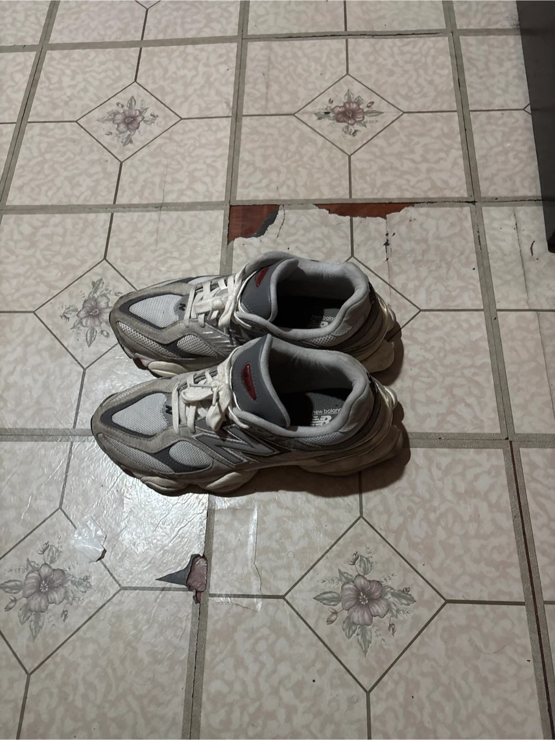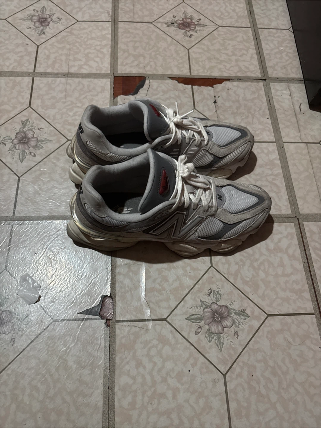 Selling a pair of New Balance 9060 sneakers in gray. They're in good condition and ready for a new home!