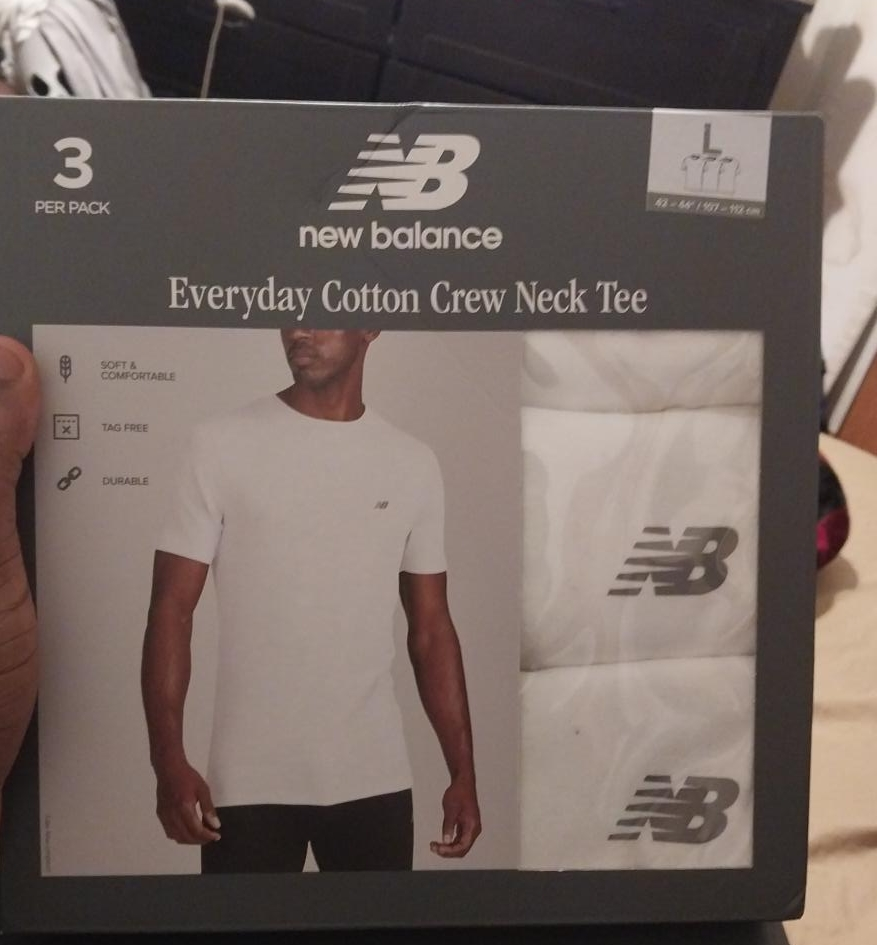 Selling a 3-pack of New Balance Everyday Cotton Crew Neck Tees in size L. These shirts are soft, comfortable, tag-free, and durable!