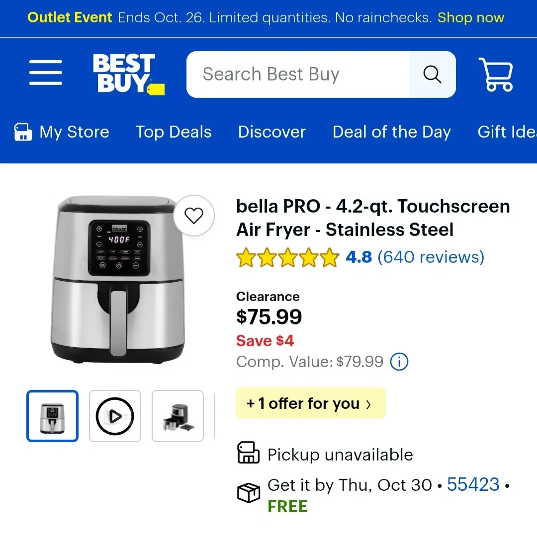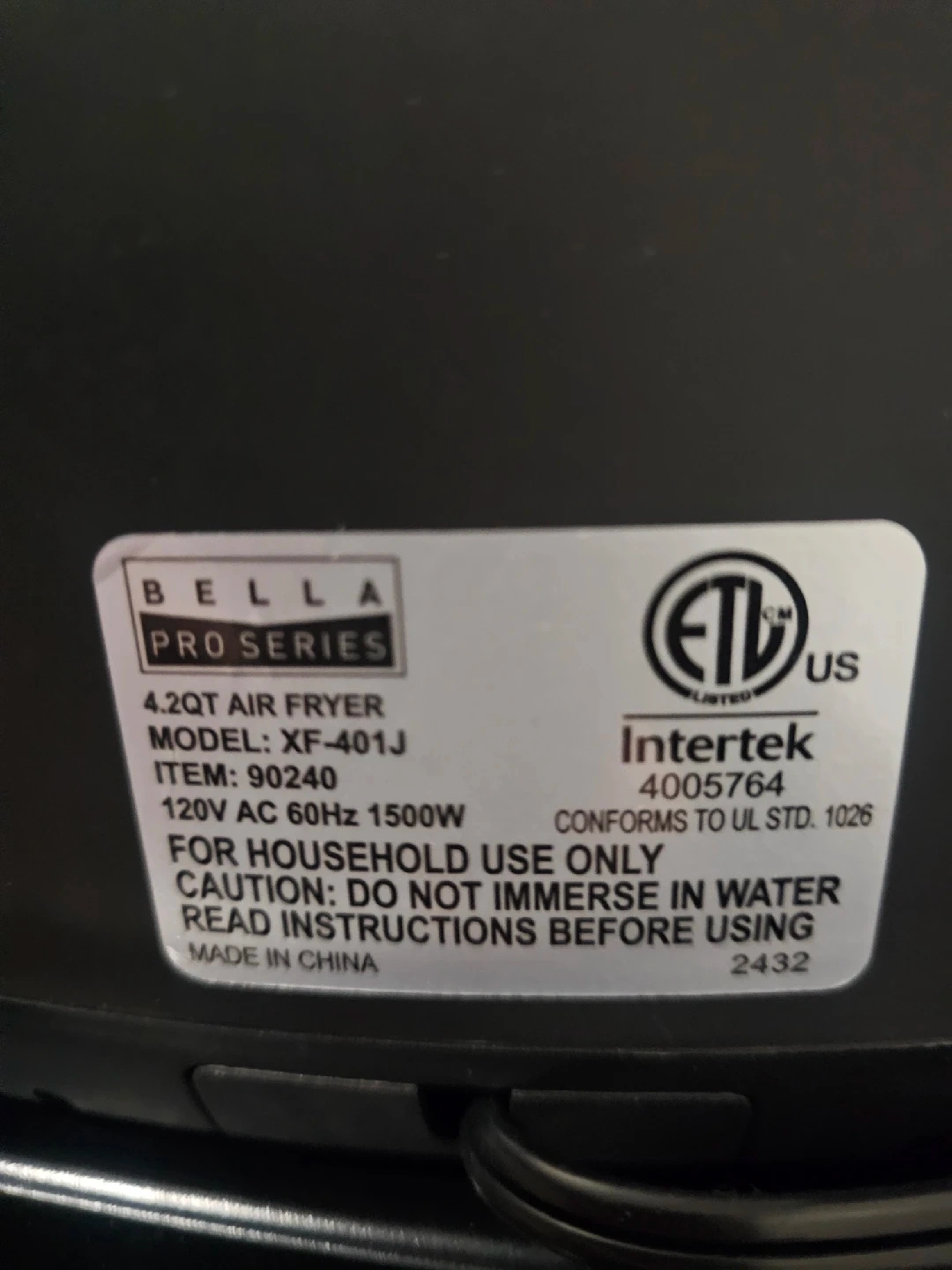 201Selling a Bella Pro 4.2-qt Touchscreen Air Fryer in stainless steel! It's a great addition to any kitchen. The model number is XF-401J. It's a 120V AC 60Hz 1500W appliance. Never used, no box, pickup only.