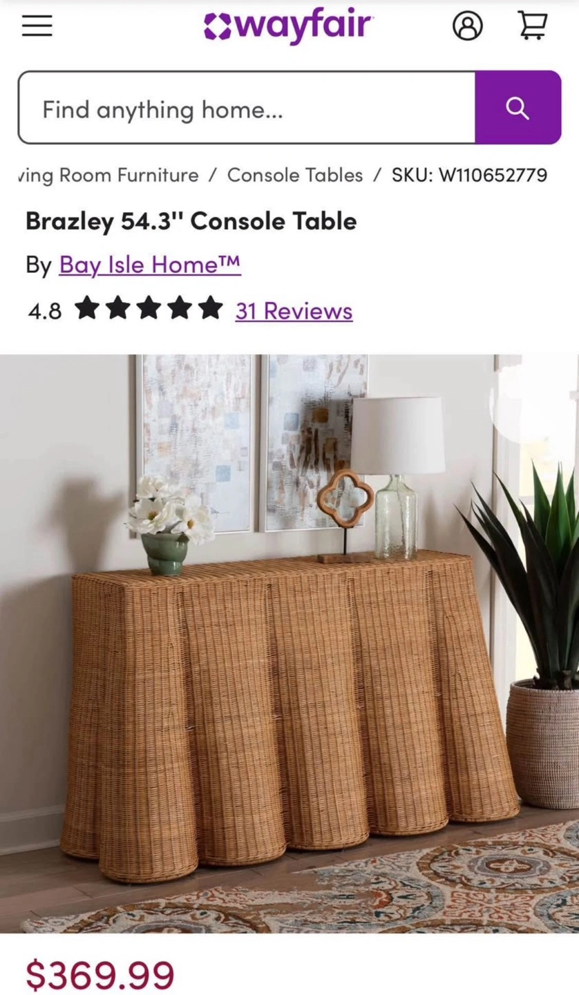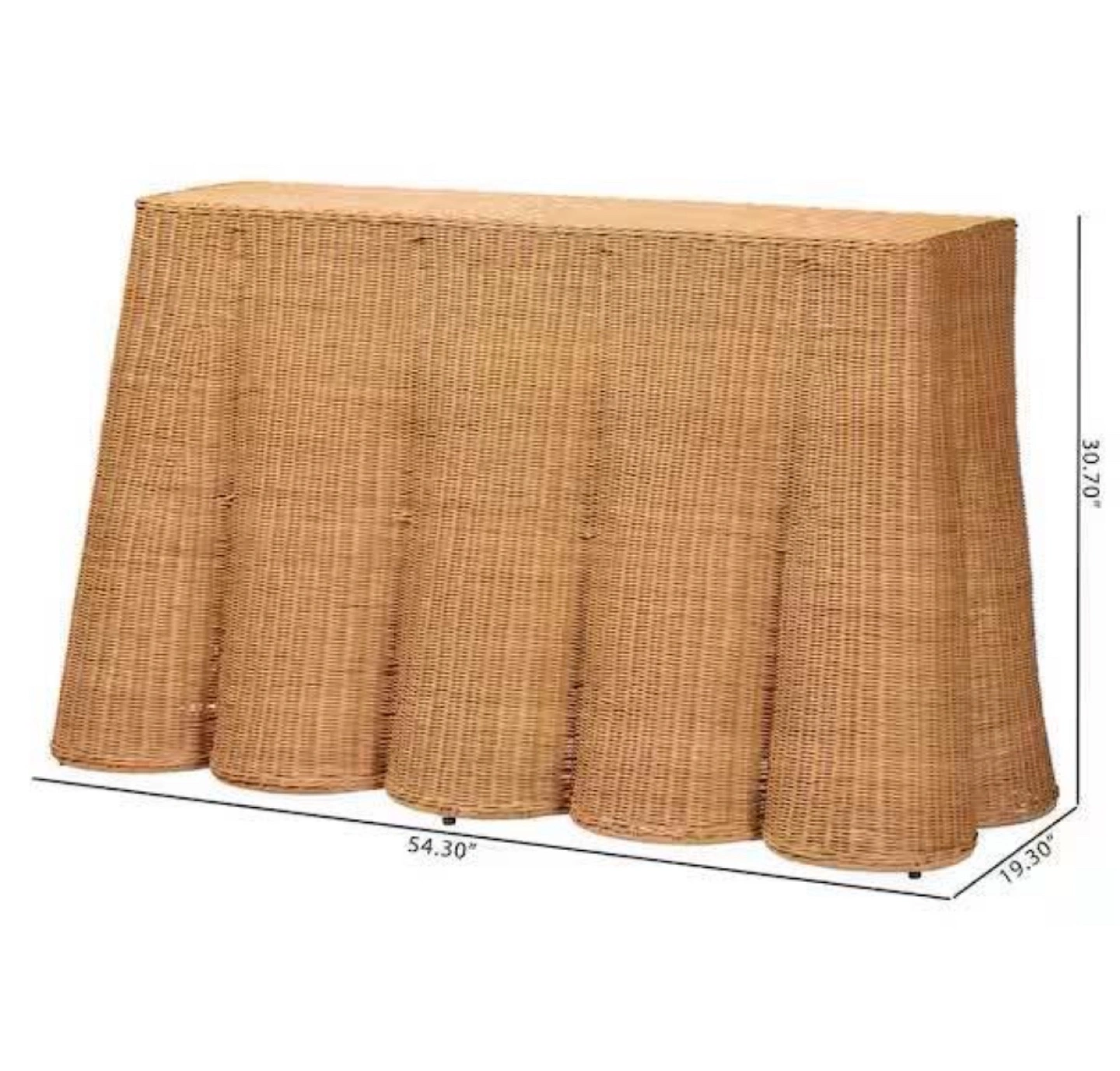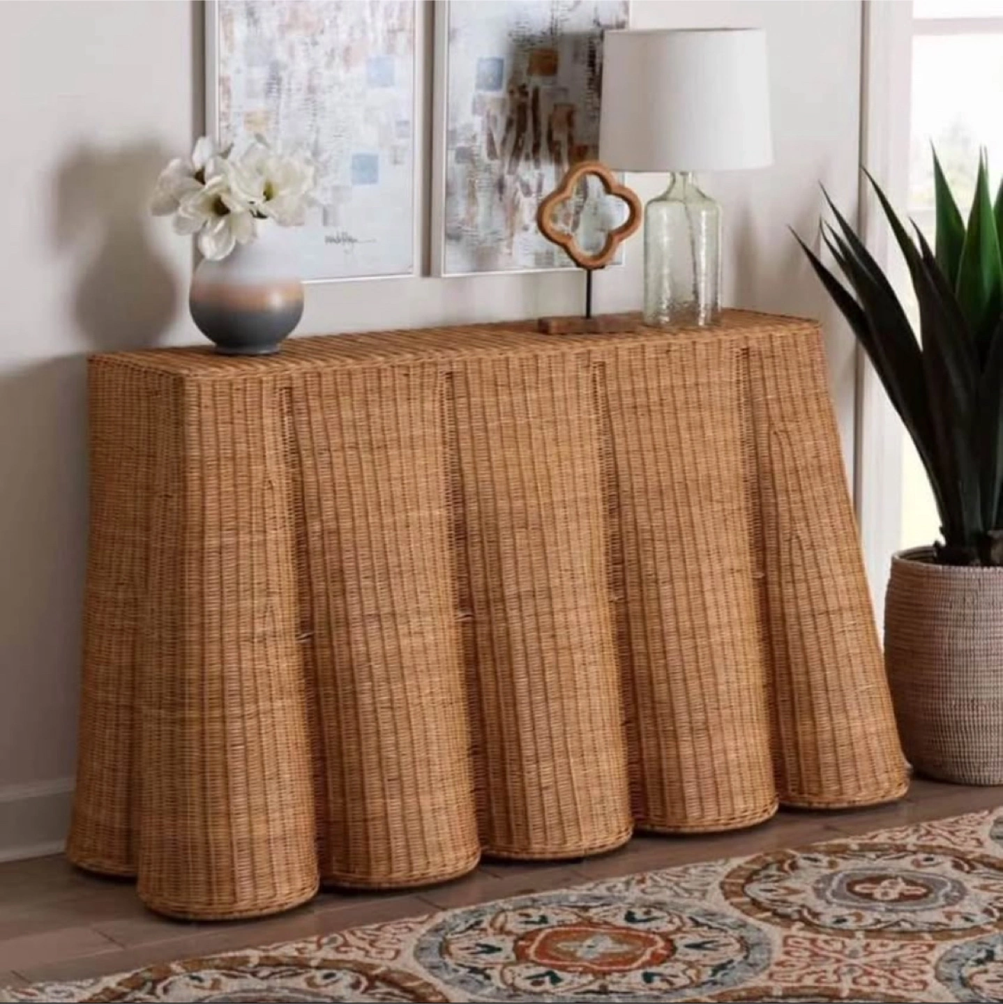 New Boho Bohemian Entryway Accent Console Table * New in the Box/Excellent Collection * Excellent Reviews!! * Dimensions: 54.30" W x 19.30" D x 30.70" H * Tabletop: 47.20" x 12.20" * Bohemian console table * Constructed from Natural Rattan, Metal, and Engineered Wood * Scalloped design * Handwoven natural rattan * Rectangular tabletop * Fully assembled * Trusted Seller / Read/ See My Reviews! Follow Me For Amazing Deals Listed Daily! * WC20013632B