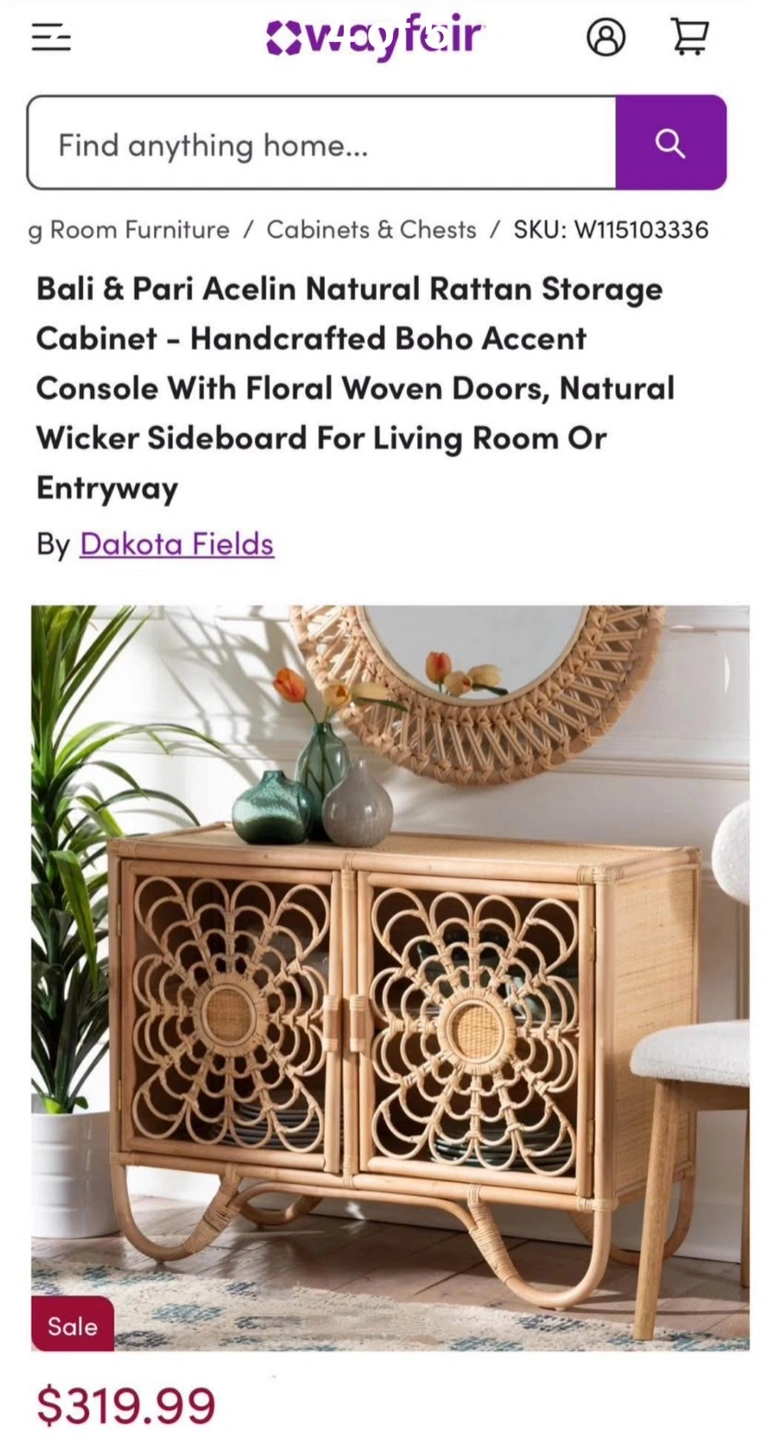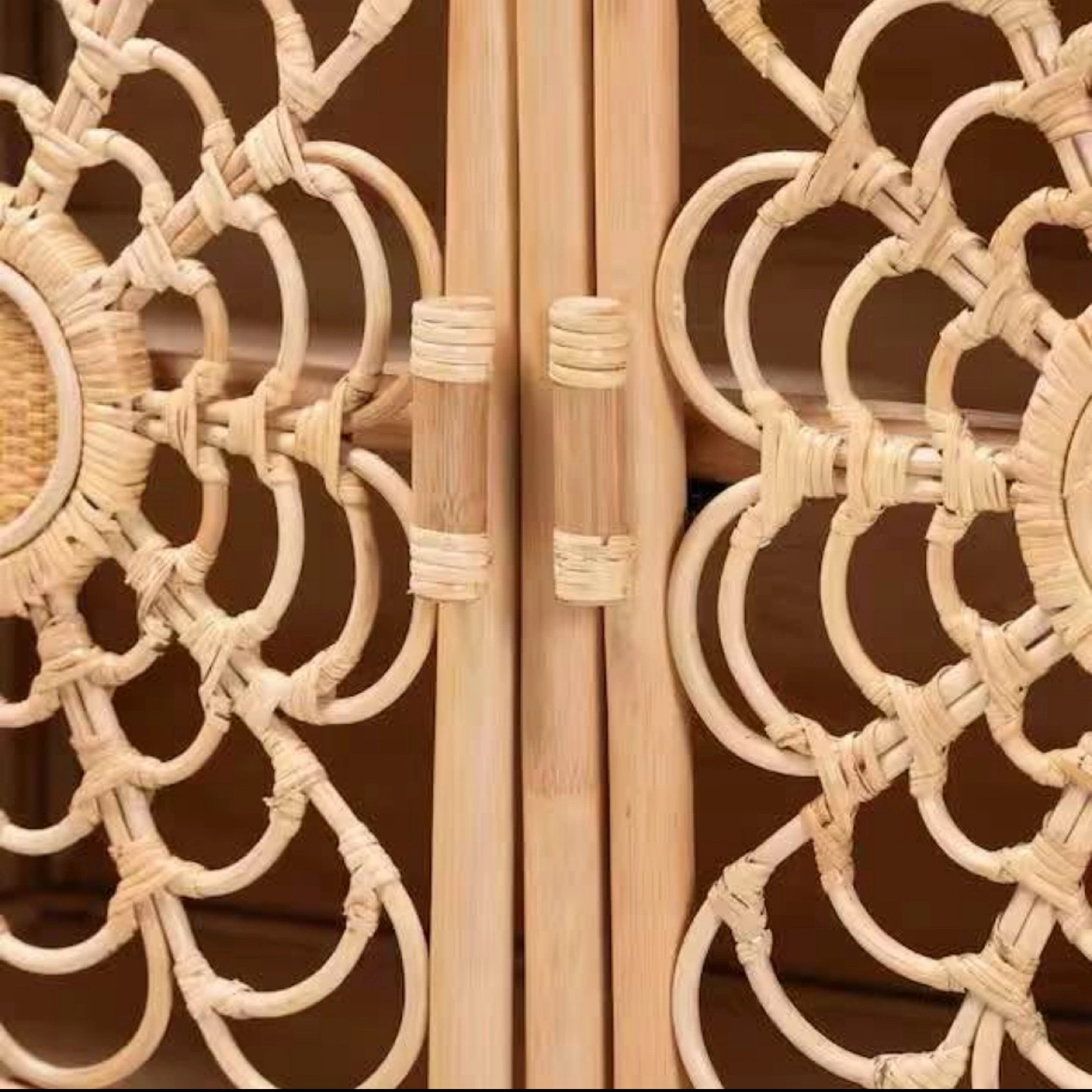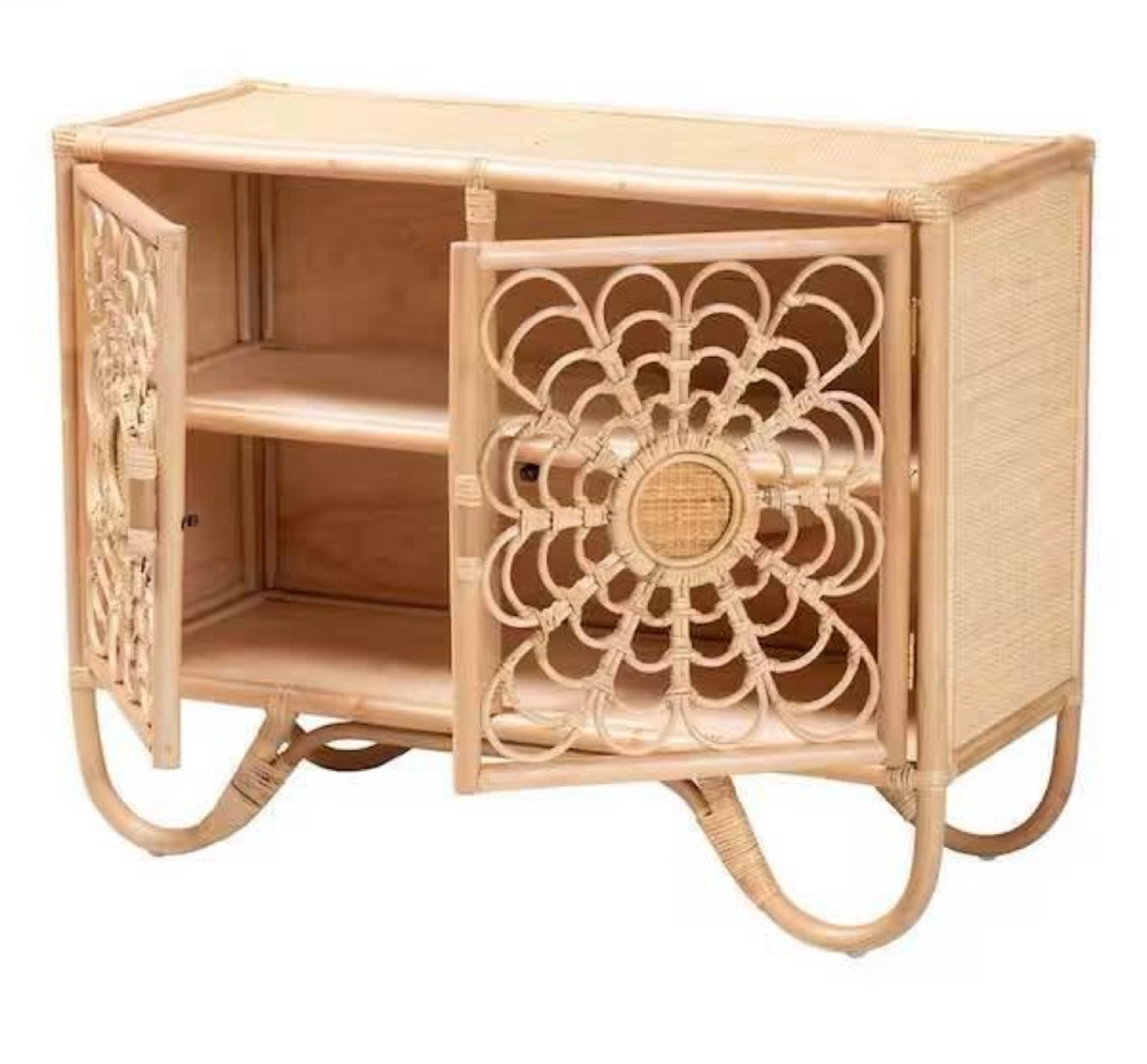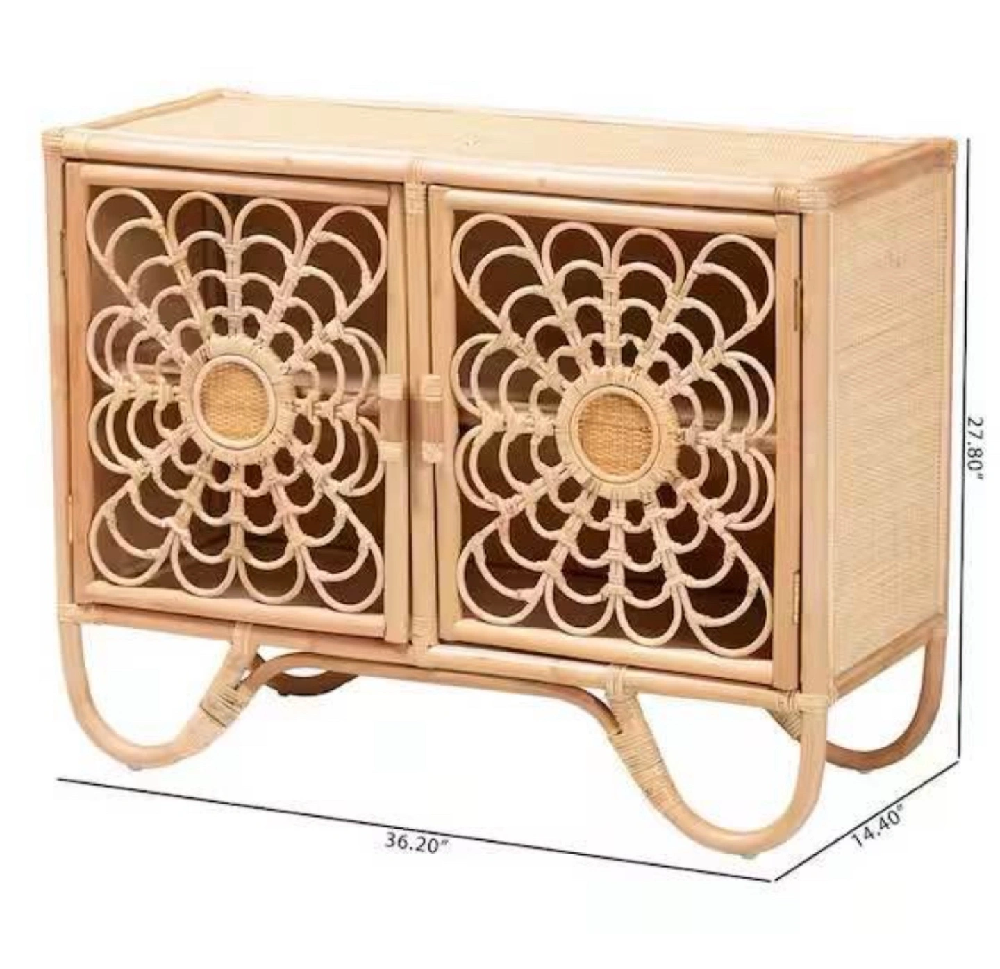 New Boho Bohemian Rattan Accent Storage Entryway Cabinet * New in the Box/Excellent Collection * Dimensions: 25.60” W x 18.70” D x 27.20” H * Upper shelf: 24.40” W x 17.70” D x 3.50” H * Bottom shelf: 20.50” W x 16.90” D x 13.40” H * Clearance floor to bottom of bottom shelf: 6.70” H * Bohemian style * Handwoven rattan: elegantly arranged natural rattan adds coastal charm with a light, airy aesthetic * Durable construction: constructed from natural rattan and engineered wood * Ample storage: 2-spacious shelves behind the doors offer space to organize and declutter busy rooms * Geometric flair: the doors feature a beautiful open weave for an alluring visual texture * Versatile storage solution: perfect for use as a display for decor or as a handy storage solution for household essentials * Fully assembled: this storage cabinet arrives ready for use * Trusted Seller / Read/ See My Reviews! Follow Me For Amazing Deals Listed Daily! * WC20013674B