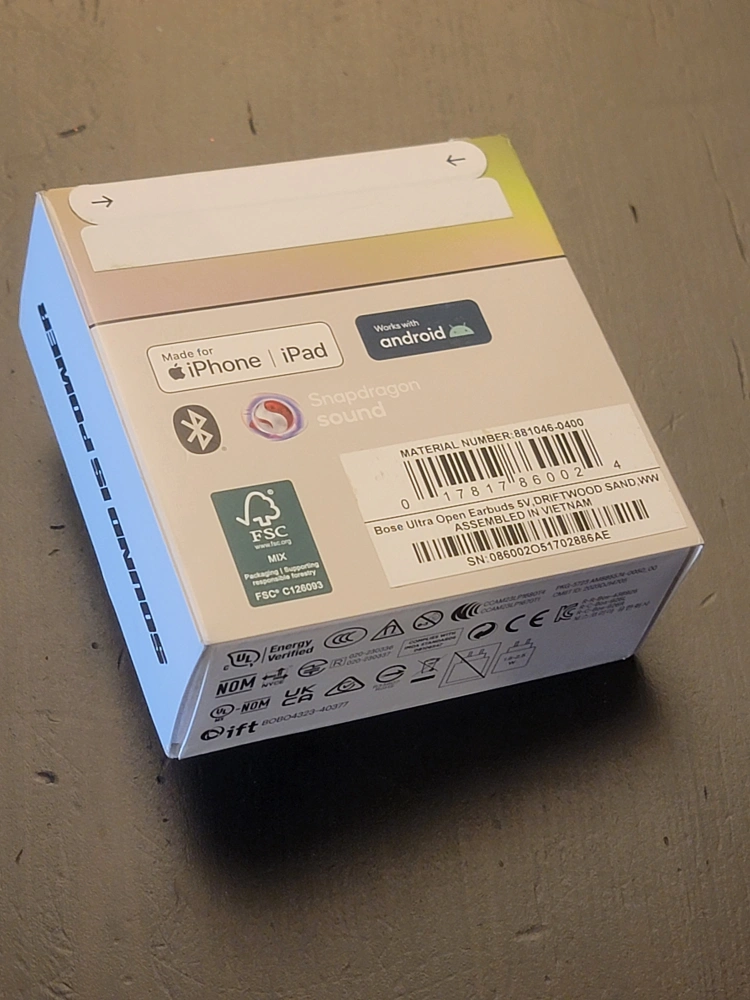 Selling a new pair of Bose Ultra Open Earbuds in the Driftwood Sand color. These earbuds work with both iPhone and Android devices and feature Snapdragon sound. They come in the original box. New never Opened.