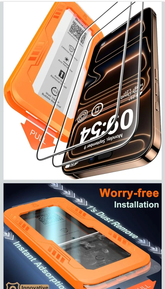 Industry-Leading Shatterproof Protection: Engineered with aerospace-grade 9H+ hardness and reinforced with triple ion-exchange technology, this iPhone 17 Pro Max blue light protection screen protector exceeds industry standards, delivering 12x improved durability. Tested against 12-foot drops, 282 lbs of crushing force, and 20,000+ abrasion cycles, it offers a military-certified solid defense for your iPhone 17 Pro Max, ensuring the screen remains intact even under extreme impacts.