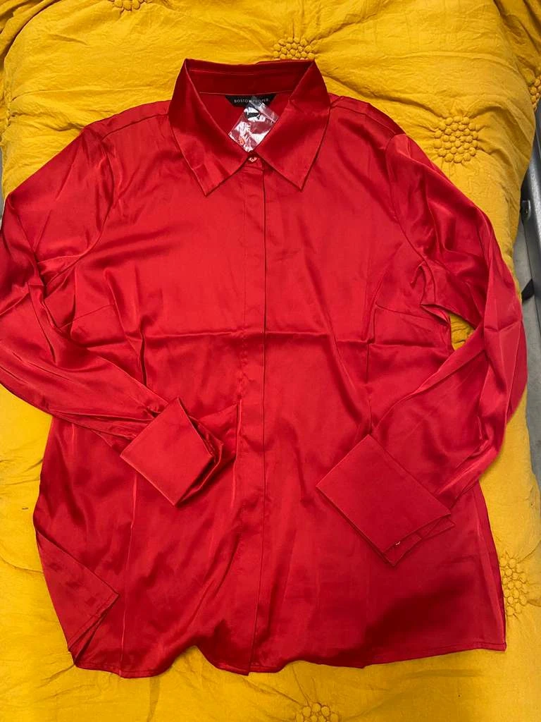 10NEW WITH TAGS 'Here's a beautiful red satin blouse from Boston Proper! It's a size 14 and in great condition. The material gives it a lovely sheen, perfect for dressing up or down