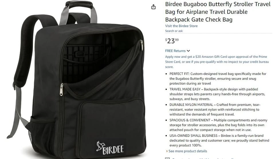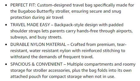 New~Bugaboo Butterfly Stroller Travel/Backpack, Durable