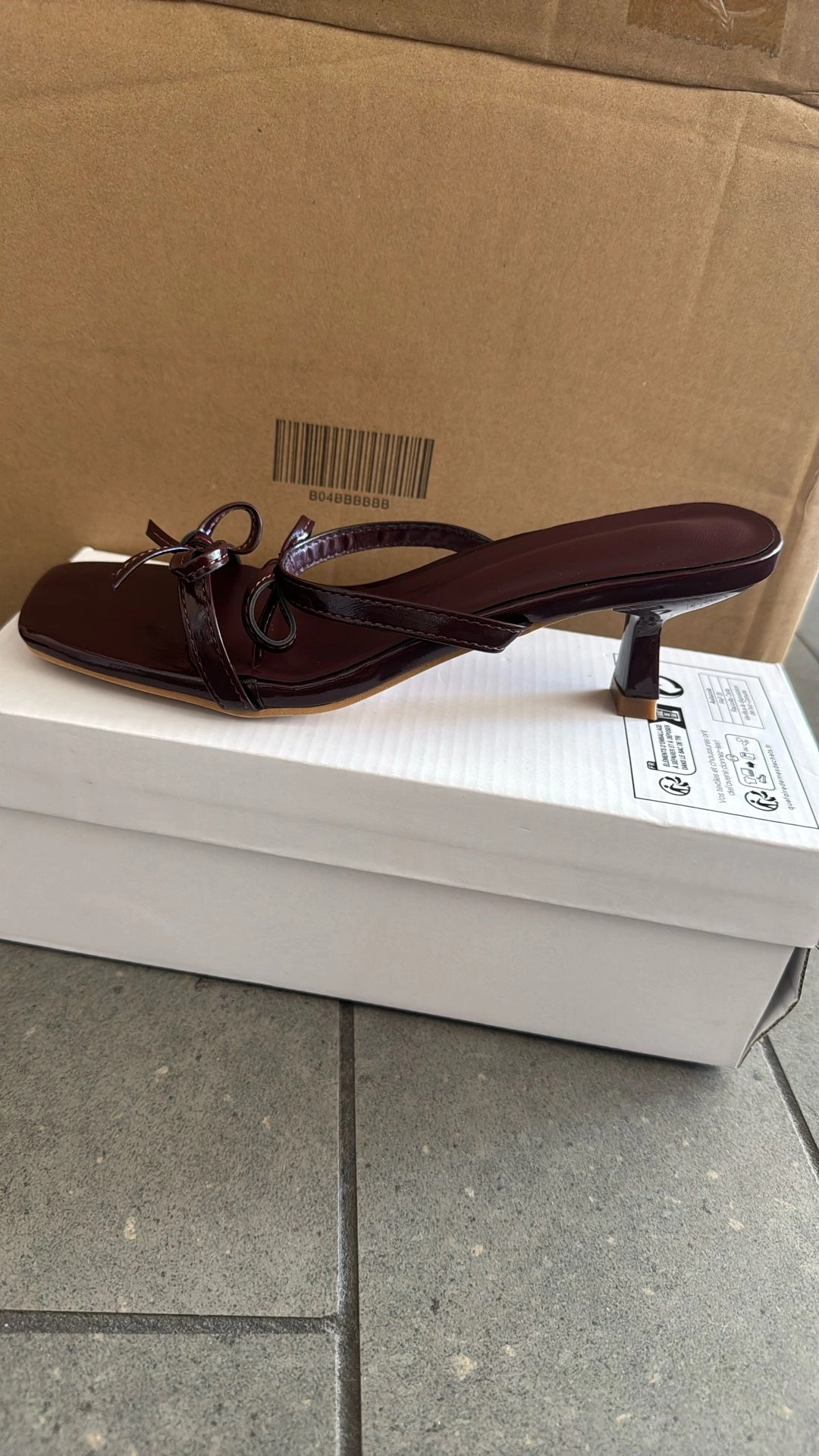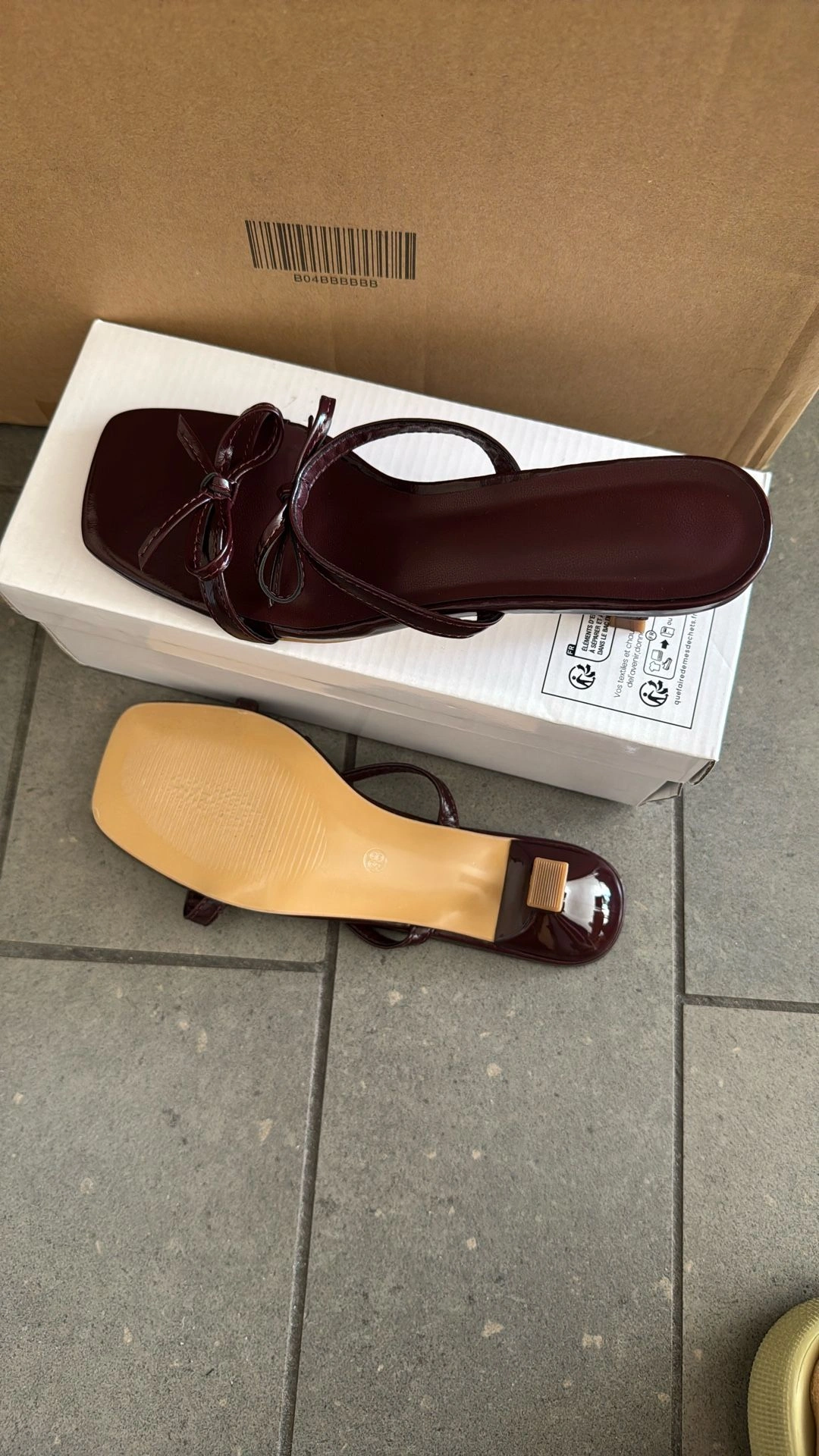 Brand new — never worn, only took out for photos. Elegant burgundy heeled sandals with bow detail and square toe. Super chic and comfortable. Note: may have a slight smell from storage (never used or opened before) — please don’t purchase if that’s a concern. Size: 7.5 Color: Burgundy red