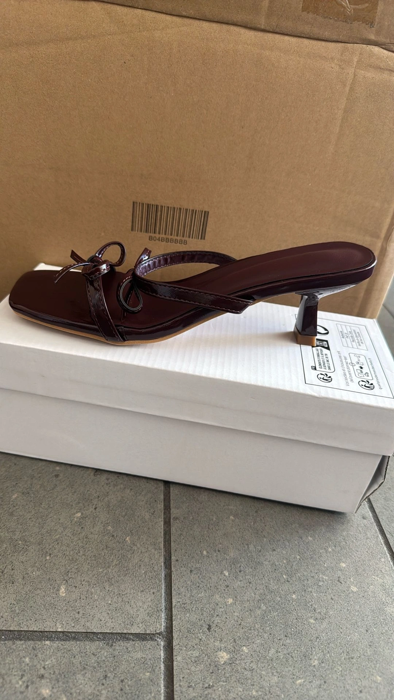 New Burgundy Bow Kitten Heel Sandals | Size 38