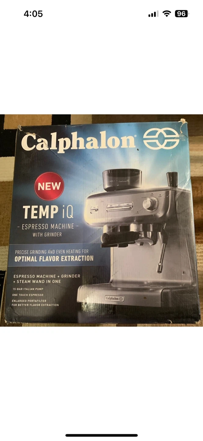 10Selling a brand new Calphalon Temp iQ espresso machine with a built-in grinder! This espresso machine is designed for precise grinding and even heating for optimal flavor extraction. It features a 15-bar Italian pump and an enlarged portafilter for better flavor extraction. It's an espresso machine and steam wand all in one