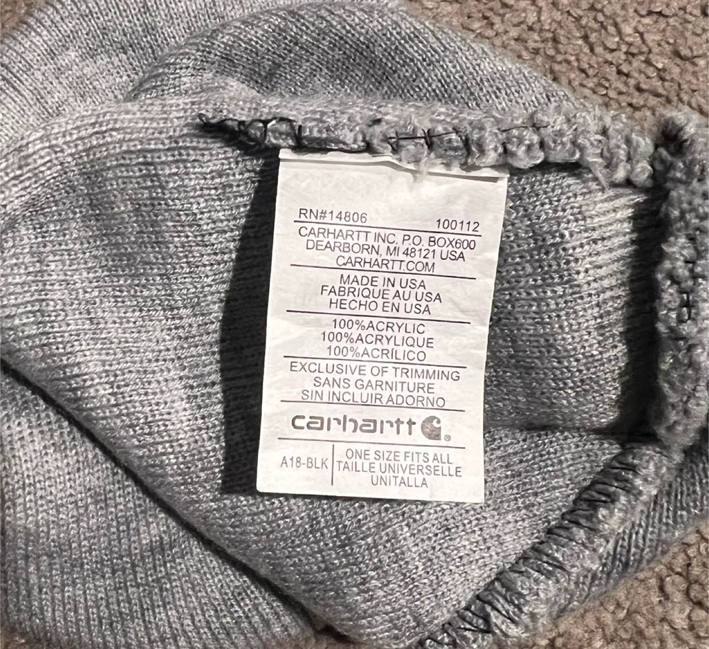 65I'm selling a brand new Carhartt Acrylic Watch Hat! It's a gray beanie, made of 100% acrylic. One size fits all. Get ready for the cooler weather!