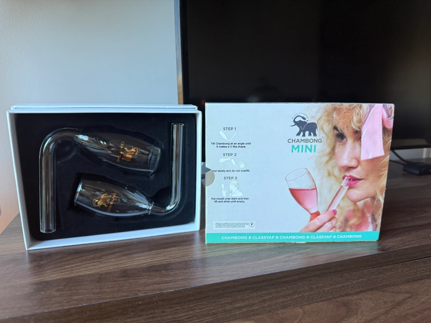 17Selling a brand new Chambong Mini set! This includes two glass mini chambongs designed for rapid champagne consumption. The set comes in its original box and includes all components. Perfect for parties or celebrations!