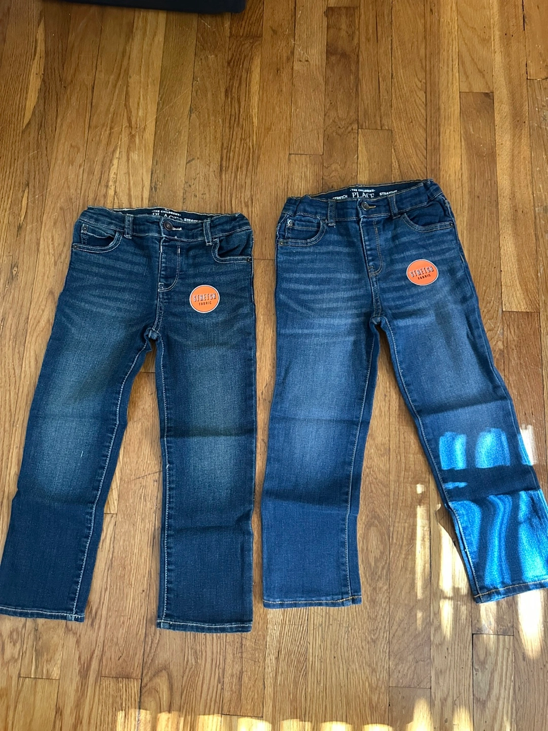 I have five bags of brand new Children's Place straight jeans, size 5T. Each bag comes with 2 multicolor jeans. 5 bags available Only $7 each!